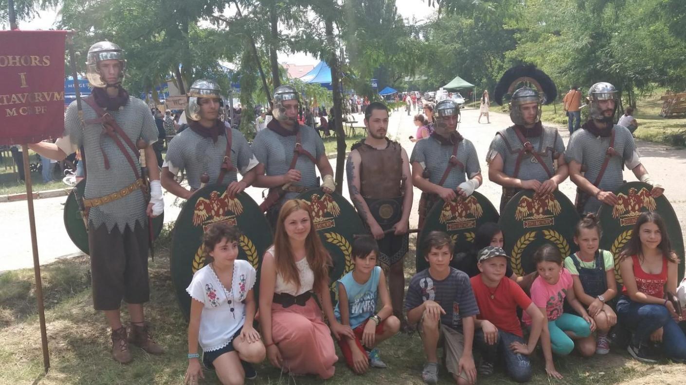 Aici au putut observa îndeaproape meşteşugurile dacilor şi romanilor, uneltele agricole, armele tradiţionale. Au urmărit apoi reprezentaţia de dansuri antice şi defilarea trupelor, precum şi bătălia dintre daci şi romani.
