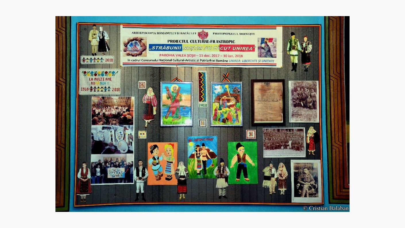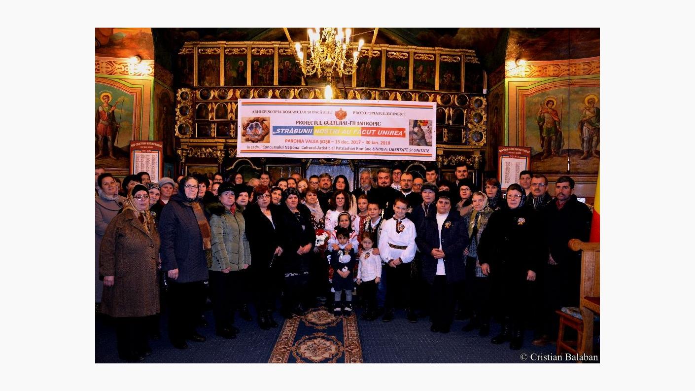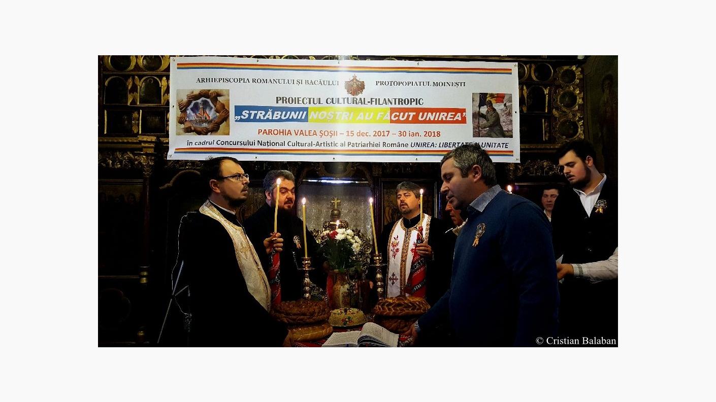 Cu binecuvântarea Înaltpreasfințitului Părinte Ioachim, Arhiepiscopul Romanului și Bacăului, în Protopopiatul Moinești au debutat manifestările culturale ce marchează Anul Omagial al unității de credință și de neam și Anul comemorativ al Făuritorilor Marii Uniri din 1918, cu proiectul cultural-filantropic „Străbunii noștri au făcut Unirea” ce se desfășoară în Parohia Valea Șoșii, în perioada 15 dec 2017 - 30 ian 2018, în cadrul Concursului Național Cultural-Artistic al Patriarhiei Române „Unirea: Libertate și Unitate”, cu participarea a 32 de tineri.