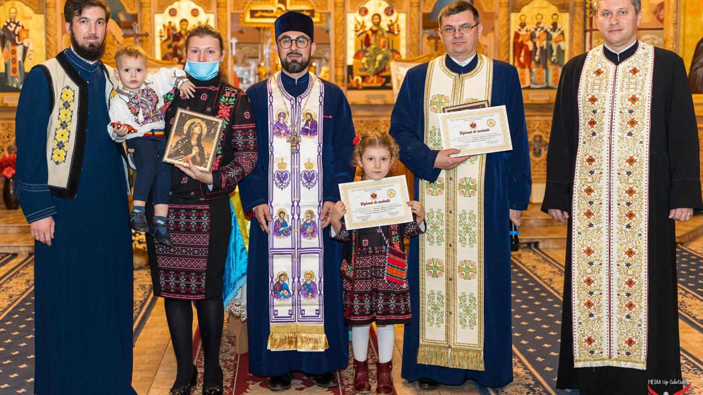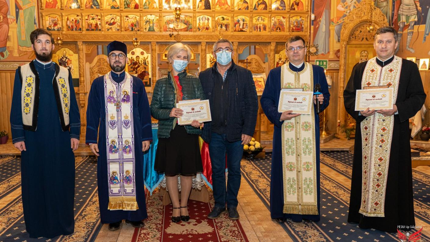 Tot în cadrul acestei activităţi, Pr. paroh Aurel Cîrlan, împreună cu Pr. Mihai-Flavius Balaban şi Pr. Marian Gliga, sub protia Pr. Inspector eparhial Daniel-Ionel Marari au săvârşit slujba de Te Deum pentru familiile prezente, cărora le-au dăruit icoane şi Diplome de excelenţă pentru activitatea desfăşurată în cadrul Asociaţiei „Treime de Arhierei” în acest An omagial al pastoraţiei părinţilor şi copiilor.