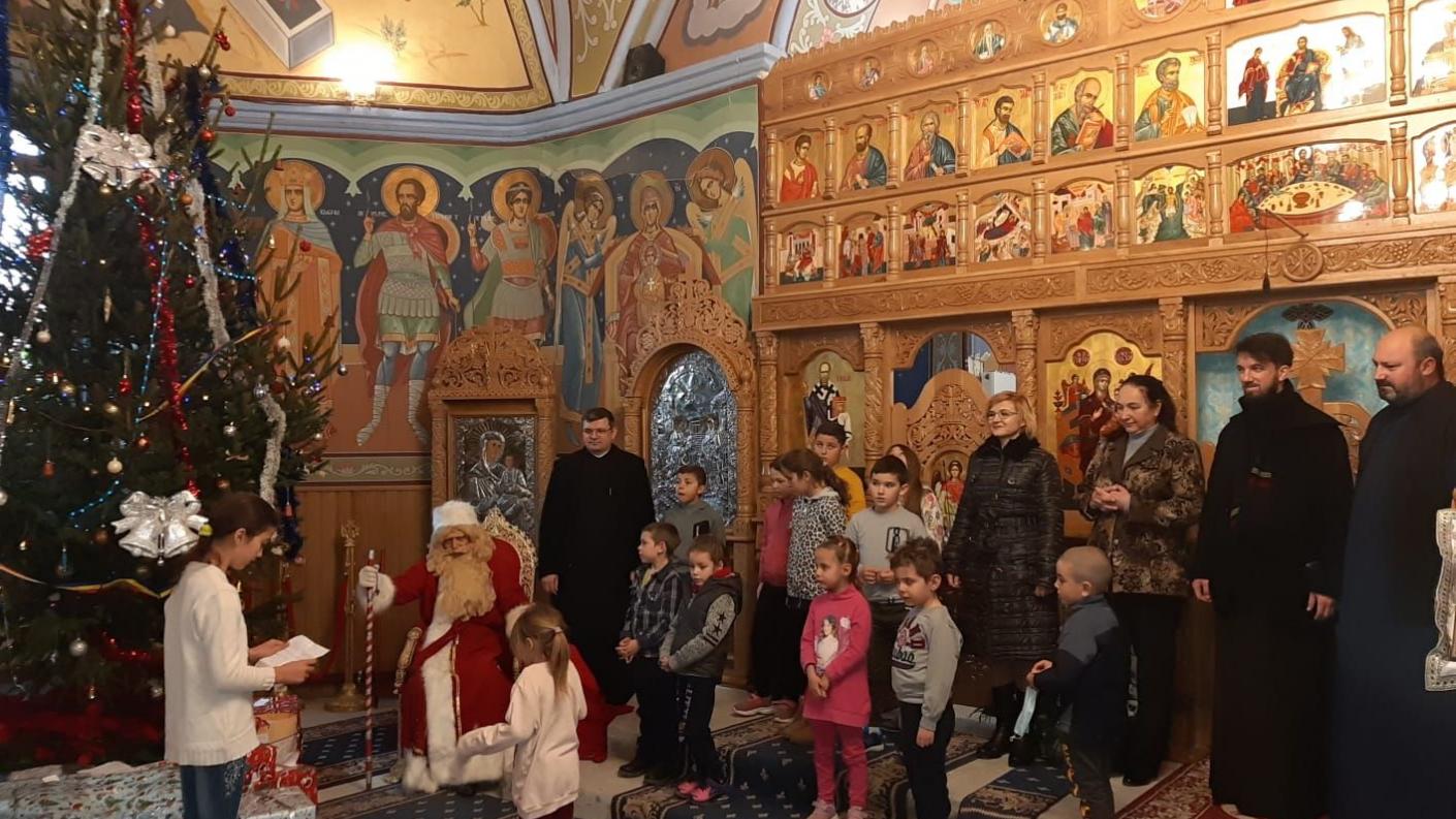 Însoţiţi de părintele paroh Liviu-Ionuţ Apetrei și doamna Prof. învăţământ primar Lenuța Tilici, copiii din Parohia Țepoaia au avut marea bucurie de a primi cadourile chiar din partea Moşului Darnic în persoană, întâlnirea având loc lângă bradul împodobit din biserica „Sf. Trei Ierarhi” Bacău. Cu emoţiile inerente, specifice unei astfel de întâlniri, copilaşii au prezentat un moment artistic, interpretând colinde şi recitând poezii.