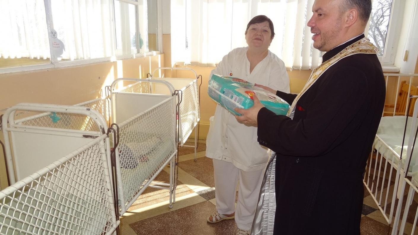 Prin grija celor prezenți (preoți si credincioși) au fost achiziționate scutece și produse de igienă în valoare de 550 de lei, acestea fiind oferite copiilor din Secția de Pediatrie – Recuperare Pediatrică.