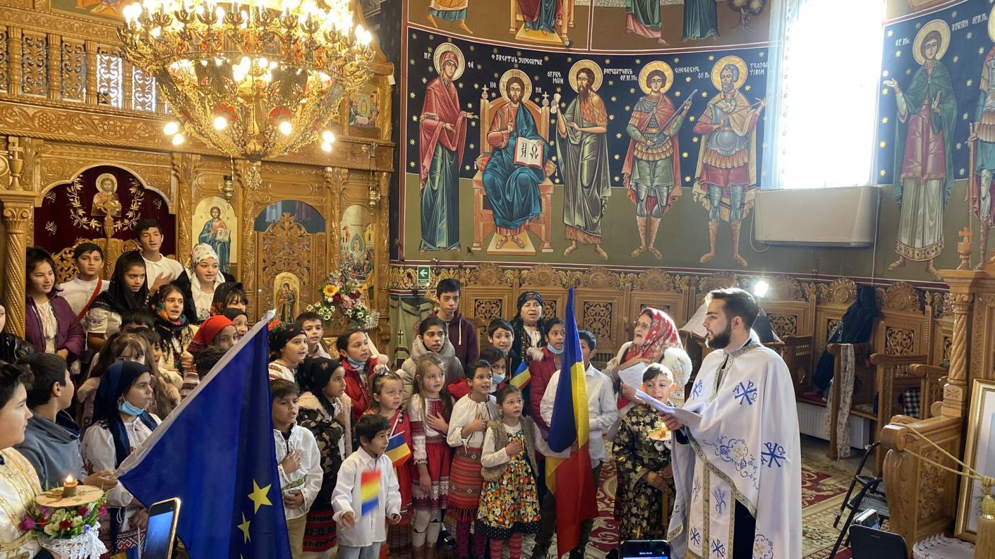 - Miercuri, Întâi Decembrie, a fost săvârșită slujba de Te Deum, iar la final, copiii din comună, îmbrăcați în port național, au intonat cântece patriotice. Începând cu ora 12.00, “caravana oftalmologică” a fost prezentă în mijlocul credincioșilor și le-a oferit consult oftalmologic gratuit.