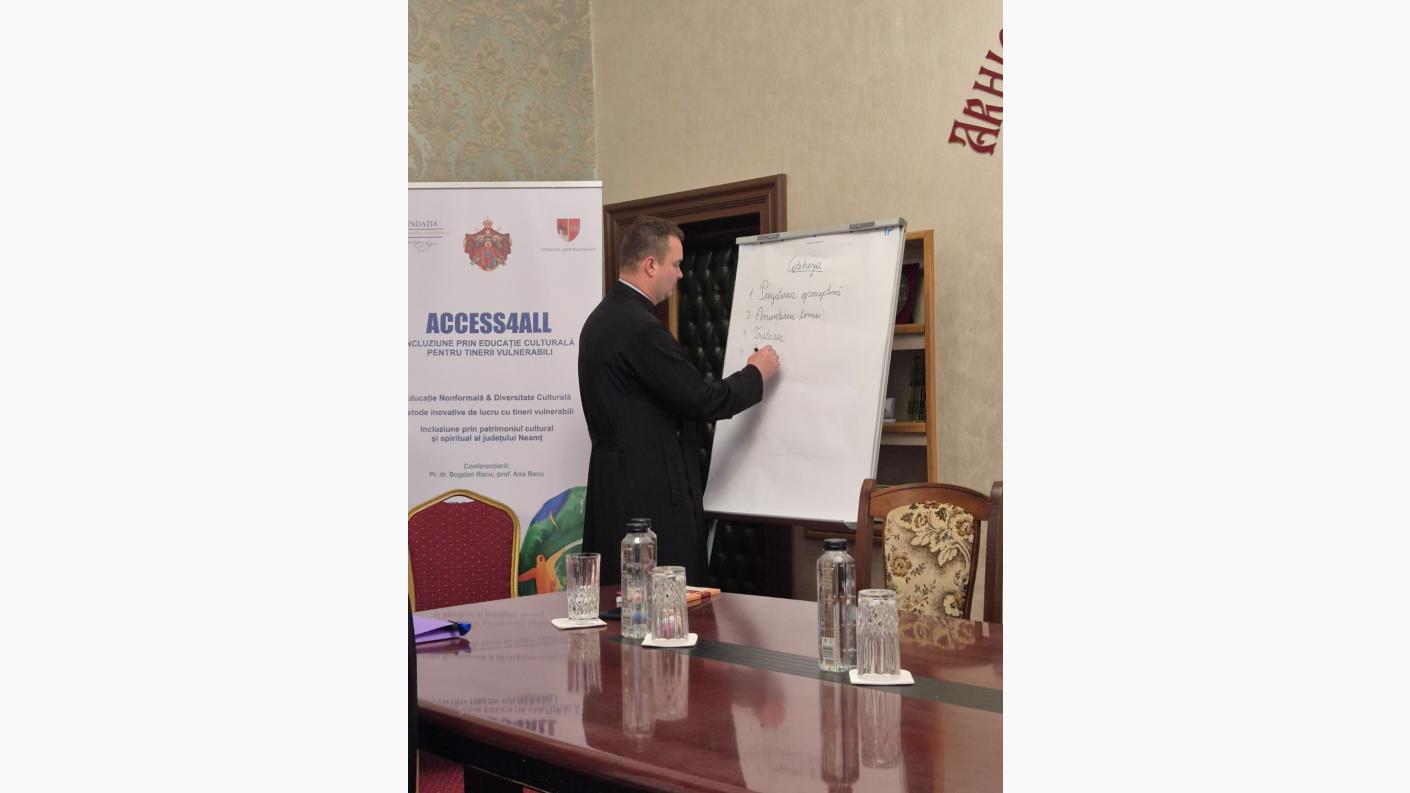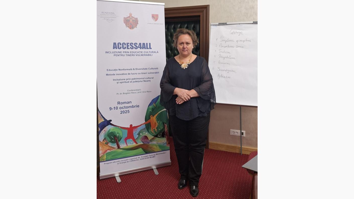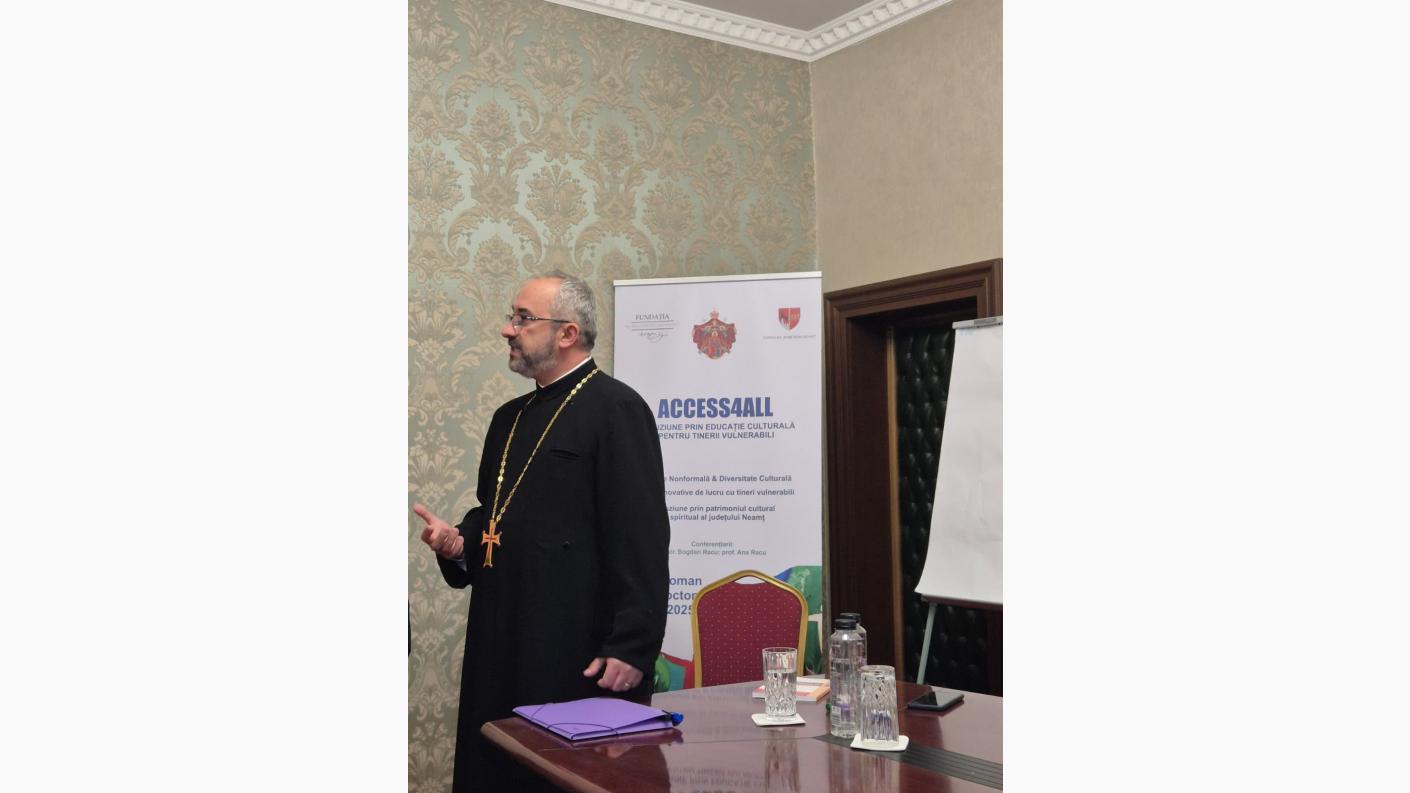 În perioada 9-10 octombrie 2025, în sala „Episcop Melchisedec” a Centrului Eparhial Roman s-a desfășurat prima activitate din cadrul Proiectului „ACCESS4ALL: Incluziune prin educație culturală pentru tinerii vulnerabili” implementat de Fundația „Episcop Melchisedec” Roman și finanțat de Consiliul Județean Neamț prin Programul finanțărilor nerambursabile din bugetul propriu pentru anul 2025 conform Legii nr. 350/2005. Prin intermediul acesteia, 40 de preoți din Protopopiatul Roman, care își desfășoară activitatea în mediul rural, au beneficiat de un curs de formare în domeniul educației non-formale incluzive, susținut de pr. prof. dr. Bogdan Racu, Inspector pentru Învățământ și Cateheză în cadrul Arhiepiscopiei Iașilor și de doamna prof. Ana Racu. Scopul activității a fost de a crește capacitatea preoților de a organiza activități cultural-educaționale non-formale în parohii pentru copii și tineri proveniți din medii vulnerabile, contribuind astfel la reducerea decalajelor de învățare, la reducerea riscului de abandon școlar și de excluziune socială.
