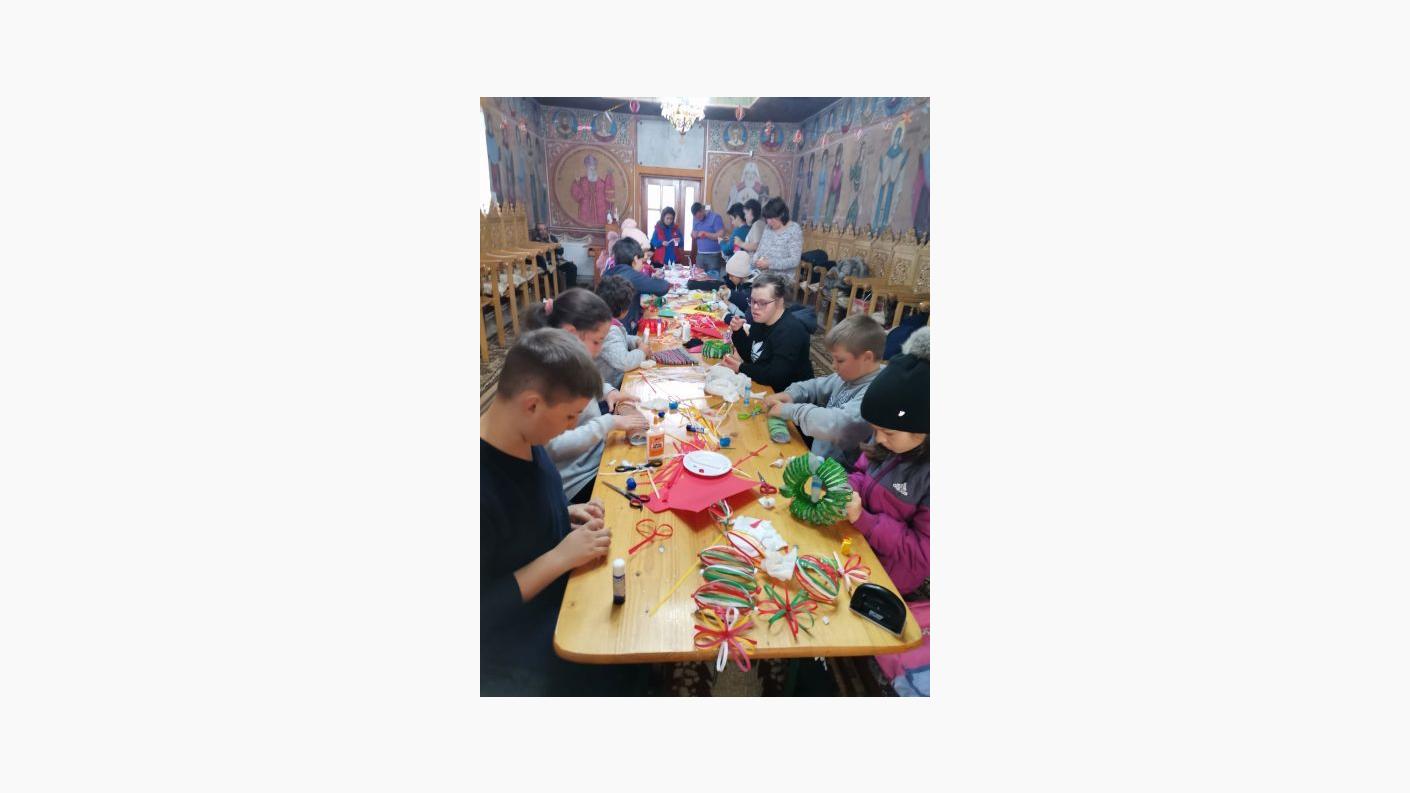 Astfel, în data de 18 decembrie, grupul de tineri ai parohiei, coordonați de doamnele învăţătoare Mareș Titiana şi Neagu Gabriela, dimpreună cu părintele paroh Huean Liviu au organizat ateliere de creație specifice acestei perioade premergătoare Nașterii Domnului.