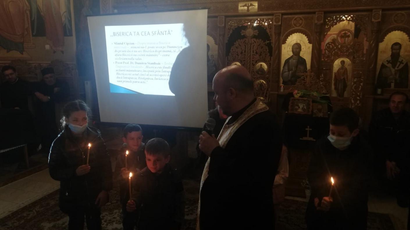 Părintele paroh Nicolae Gavriliu, în debutul catehezei, a prezentat pe scurt rolul acestui mijloc de propovăduire, de a fixa mai bine învățăturile de credință de către enoriași, având ca fundament argumente scripturistice sau patristice.