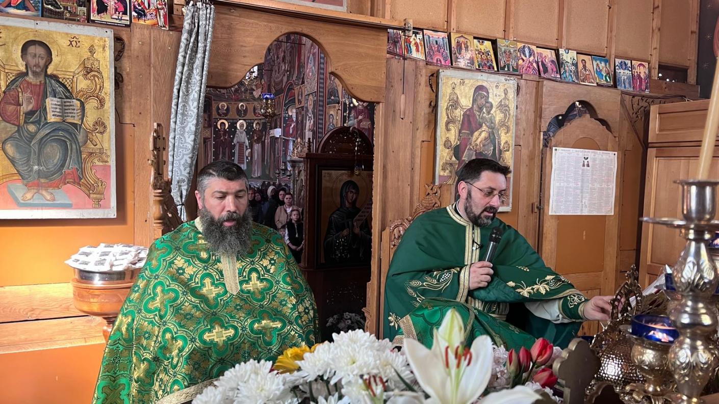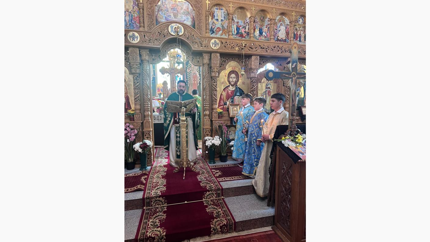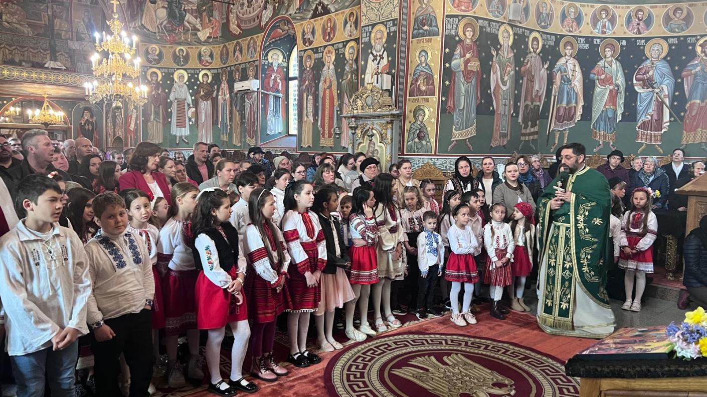 Copilaşii, îmbrăcaţi în ie şi straie de sărbătoare, au fost prezenţi în ziua praznicului, împreună cu părinţii şi cu bunicii lor, la micul spectacol pe care l-au organizat la finalul Sfintei Liturghii, în biserica din sat.