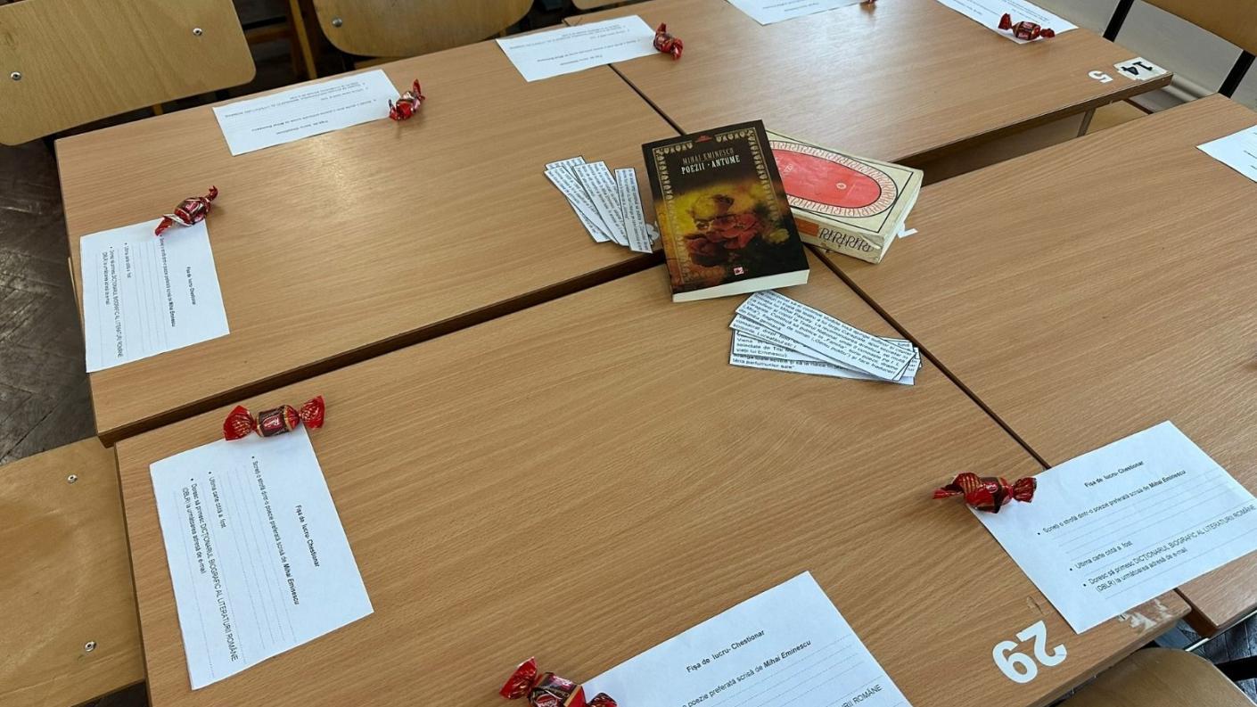 Activitatea s-a desfășurat în sala de lectură a liceului, acolo unde elevii au fost împărțiți în patru grupe a câte zece elevi. Aceștia au parcurs conținutul basmului „Făt-Frumos din Lacrimă”, au cules informații despre viața și opera scriitorului, au recitat poezii în română și în franceză o parte dintre ei expunând un moment muzical cu acompaniament la chitară. La final, fiecare participant a completat câte un chestionar unde a scris o strofă preferată din vasta operă ce îi aparține „Luceafărului poeziei românești”.