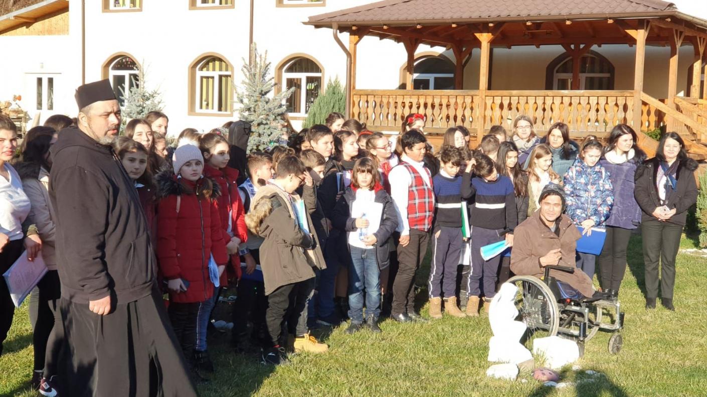 Apoi și-au îndreptat pașii către Aşezământul "Sfântul Voievod Ștefan cel Mare" din localitatea Hârja, unde persoane vârstnice cu dizabilități au fost sensibilizate de colindele interpretate de corul "Vlahuță".