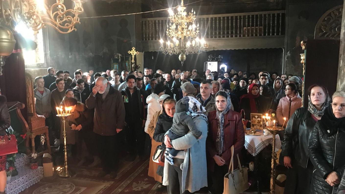 Slujba Sfintei Liturghii a fost oficiată de un sobor de preoți, la care s-au alăturat, ca delegați ai părintelui protoiereu Negoiță Ioan, părintele secretar Vasile Abageru și părintele Gabriel Albu, asistent-social.