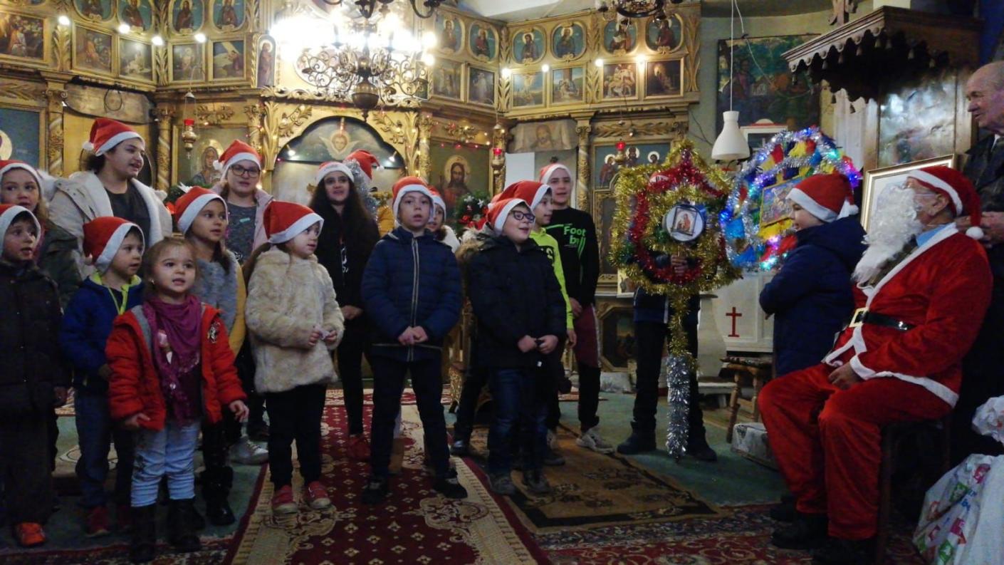Astfel, în prima zi de Crăciun, după săvârșirea Sfintei Liturghii, copiii parohiei l-au primit cu bucurie pe Moș Crăciun, care și anul acesta a venit incărcat cu daruri multe. A urmat apoi un emoționant program artistic, cu colinde, poezii și nelipsitele urări pentru un an nou mai bun și fercit.