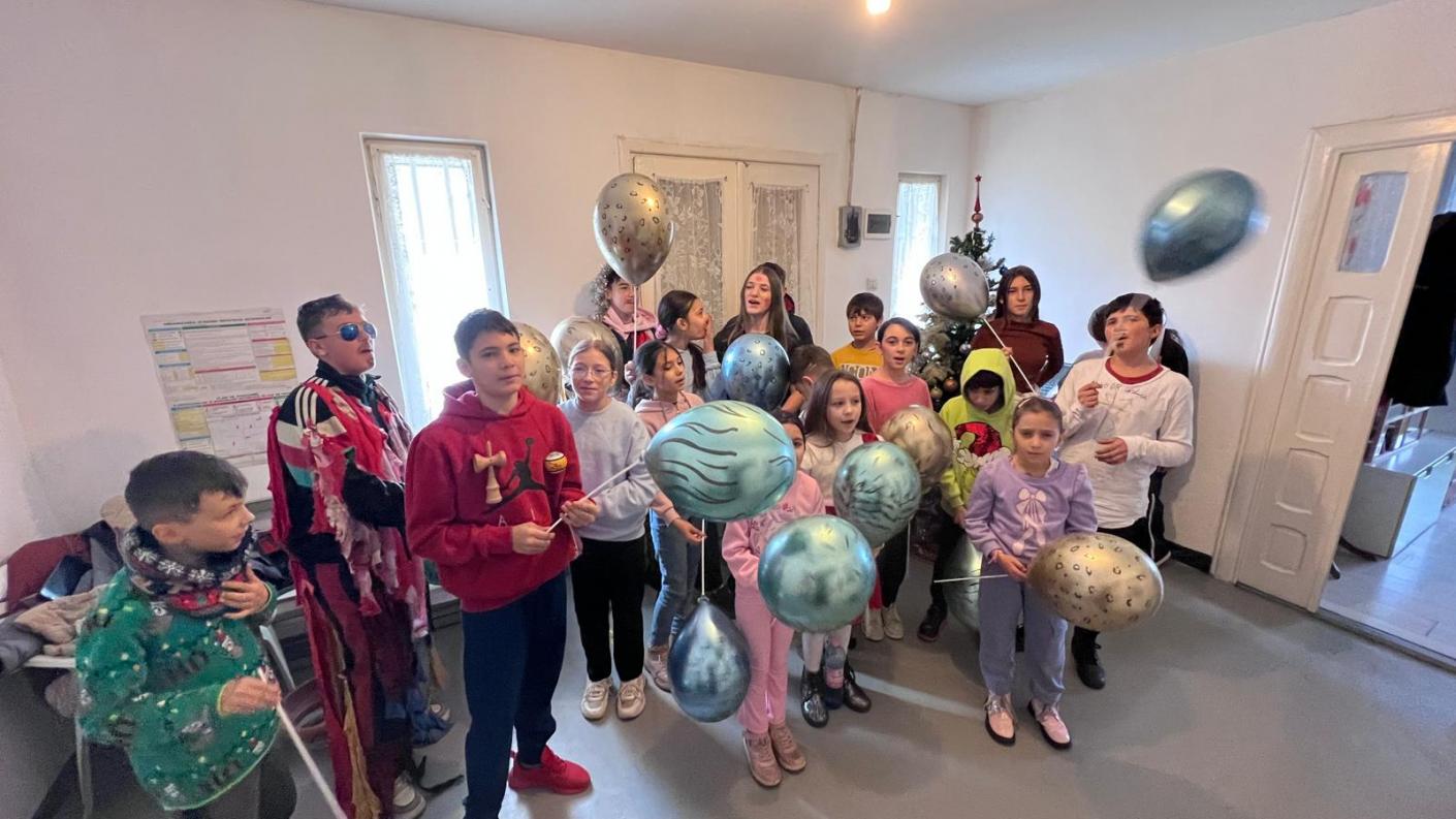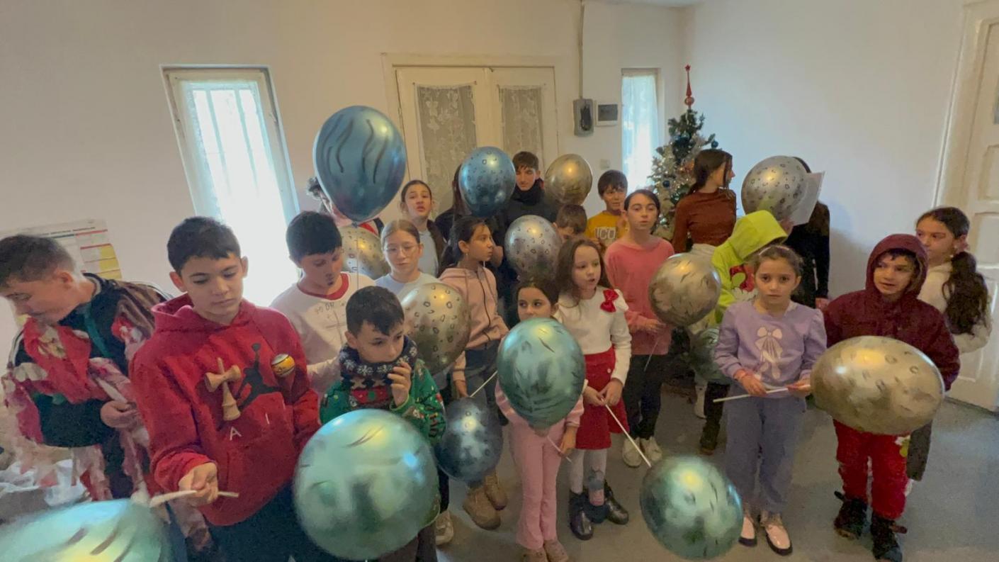 Momentul oferirii cadourilor a fost unul plin de emoție: copiii au primit darurile cu zâmbete largi și ochi strălucitori, iar atmosfera a fost animată de colinde, râsete și bucuria specifică sărbătorilor de iarnă.