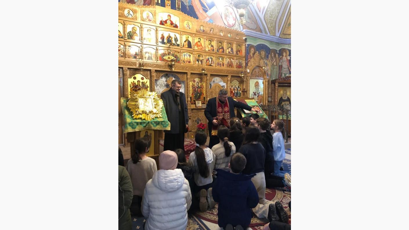 Împreună cu părintele Ioan Mirel Andronache, parohul acestei comunităţi, preoţii Parohiei „Sf. Trei Ierarhi” Bacău au participat la un program artistic realizat de copilaşii pregătiţi de către doamna Ionică Violeta, care au interpretat colinde şi au recitat poezii specifice Sărbătorilor de iarnă.