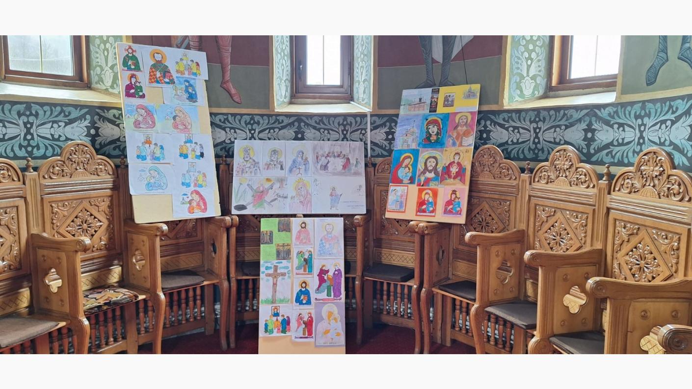 Copiii au participat cu entuziasm la activități practice: au plantat flori în jardiniere, au lucrat în cadrul unui atelier de creație și au realizat o expoziție de icoane, exprimându-și sensibilitatea artistică și credința.