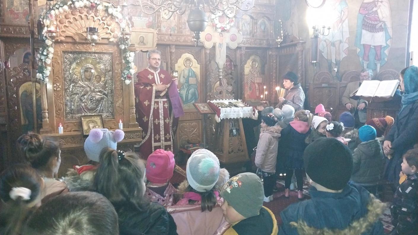 Miercuri, 20 martie 2024, s-a săvârșit la biserica cu hramul ”Sfântul Nicolae” Liturghia Darurilor mai înainte sfințite, la care au participat 80 de copii de la Grădinița din localitate care, ajutați de cadrele didactice, s-au împărtășit cu Sfintele Taine, au rostit rugăciuni, au cântat și au răspuns la întrebările adresate de preoți în dialogul purtat despre importanța păstrării sănătății plecând de la nutriție, stil de viață, activități, obiceiuri și ajungând până la vindecarea prin credință, rugăciune și fapte bune. Cu bucurie și entuziasm specifice vârstei, copiii au rostit o rugăciune specială pentru toți copiii din lume afectați de boală, războaie, sărăcie, abandon sau singurătate.