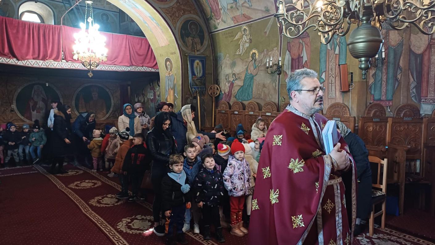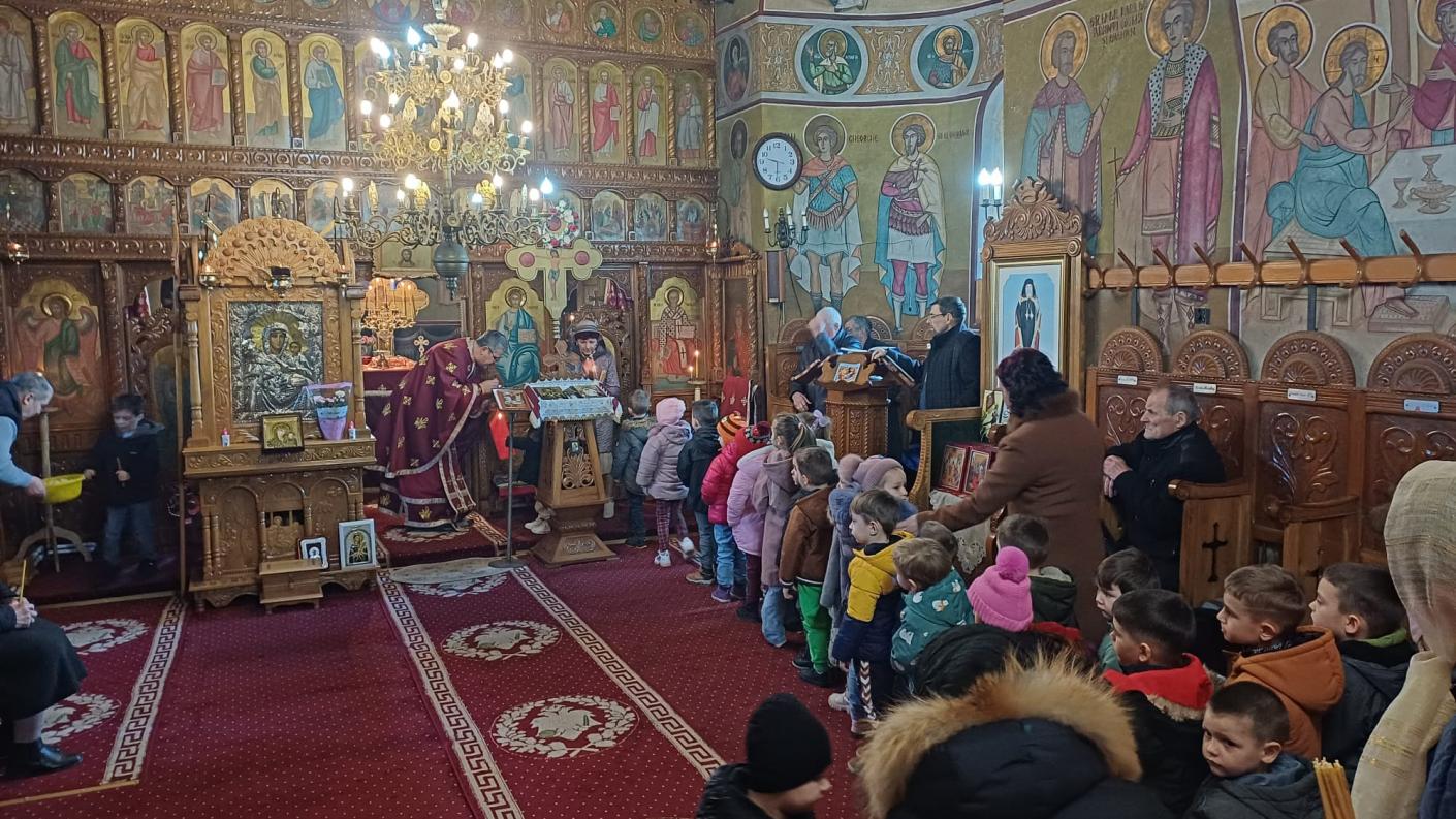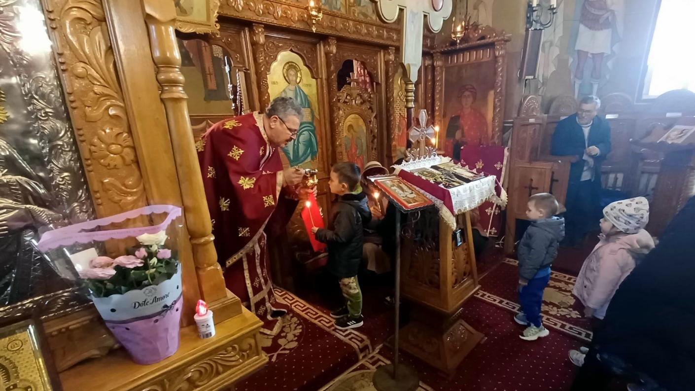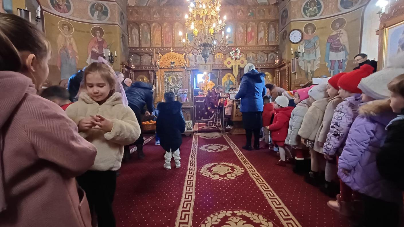 În timpul Sfintei Liturghii, copiii au participat activ, rostind rugăciuni și trăind frumos momentul primirii Sfintelor Taine, după care au primit din partea părinţilor și a credincioșilor prezenți mici daruri dulci—mere, prăjituri și sucuri, care au sporit bucuria de pe chipul micuților creștini.