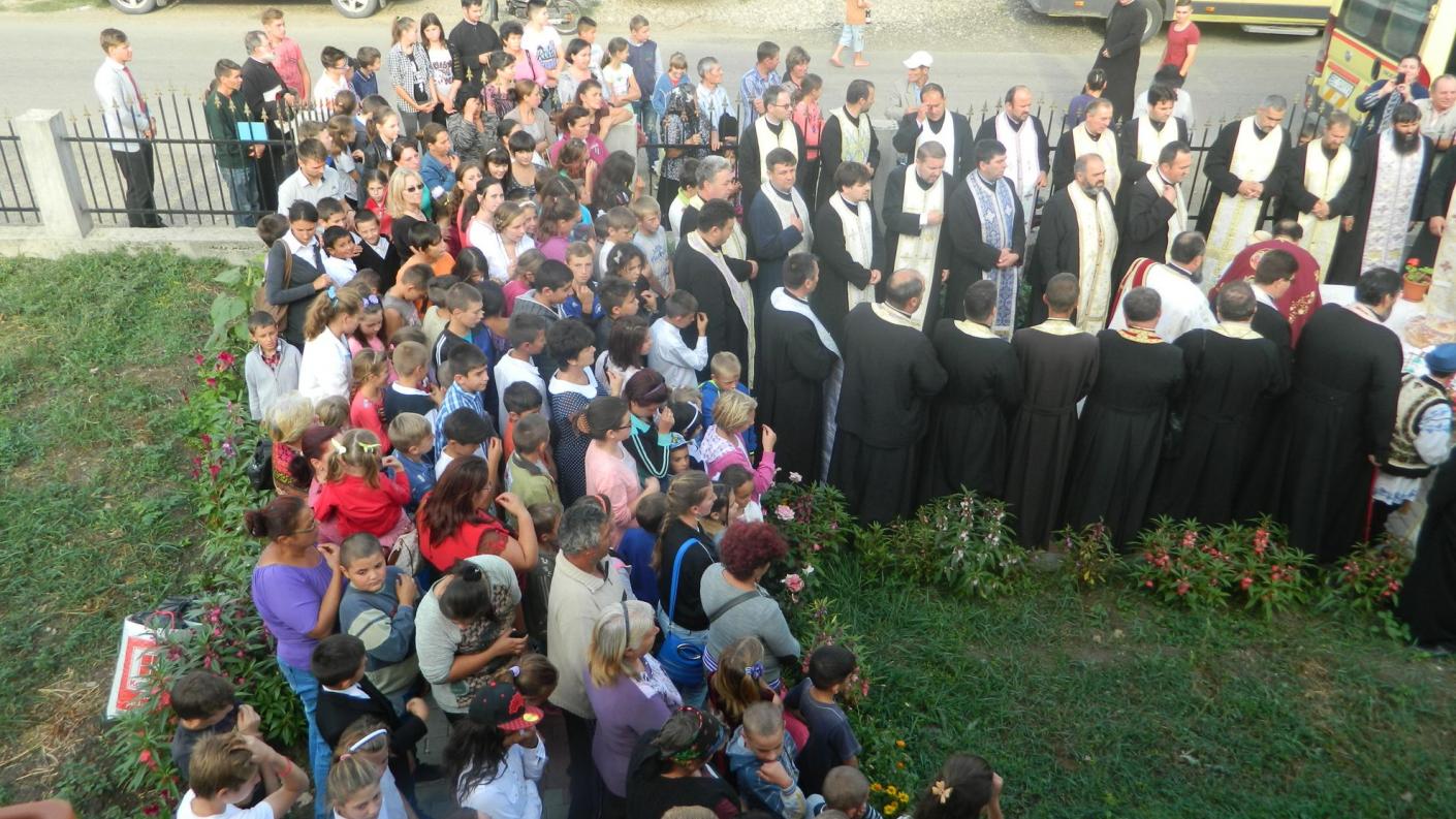 Prima etapa s-a derulat luni, 14 septembrie 2015, la sediul protoieriei, acolo unde s-a oficiat o slujbă de pomenire a eroilor căzuți în Primul Război Mondial, elevii fiind îndemnați a urma exemplul lor în apărarea valorilor morale și spirituale ale neamului, ducându-și crucea asemenea înaintașilor, până la sacrificiul suprem. Cu această ocazie, 260 de elevi din familii cu situație materială precară, au primit ghiozdane și rechizite.