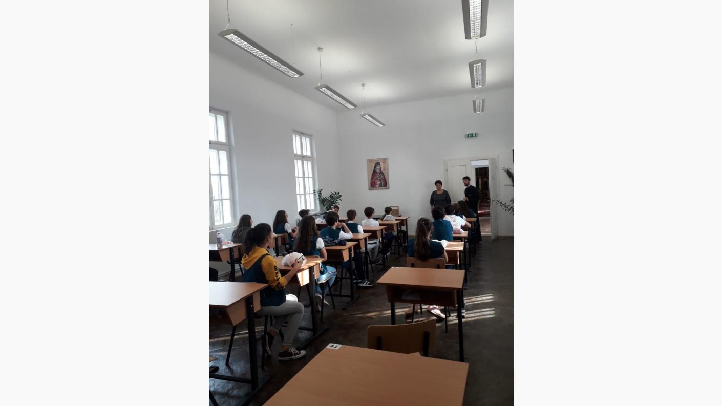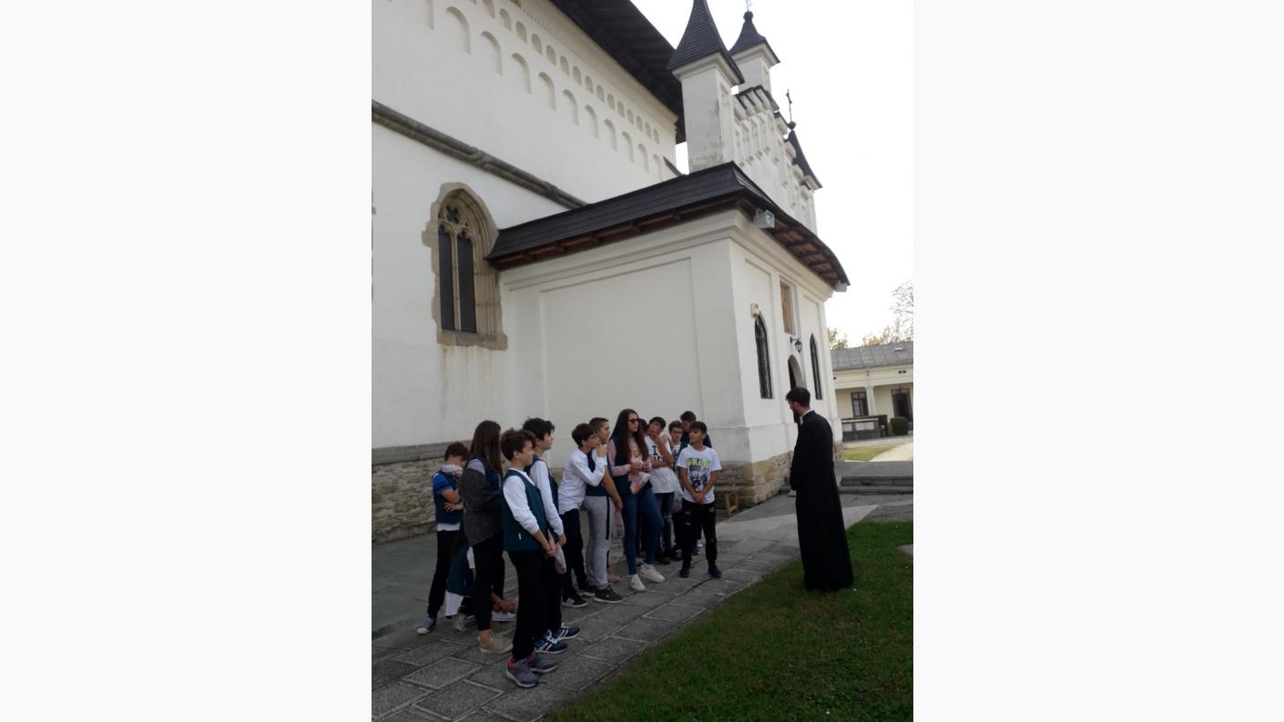 Elevii au vizitat vineri, 19 octombrie 2018, Centrul pentru copii, avându-i alături pe părintele Gliga Marian şi Crețu Cătălin, care le-au prezentat date despre Episcopul Melchisedec Ştefănescu, fondatorul acestui centru.