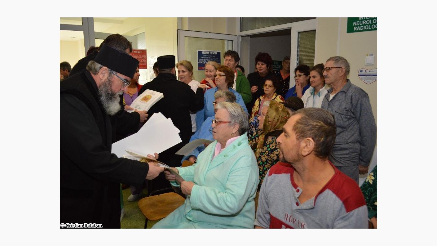 Părintele Protoiereu i-a întărit în credință și răbdare pe cei ce sunt în suferință, dar i-a şi felicitat pe cei ce sunt implicați în slujirea celor bolnavi: „Dorim ca şi în anul acesta, prin colindul cel bun și sfânt, atât de drag sufletului nostru, să aducem vestea cea bună a Nașterii Domnului nostru Iisus Hristos. Totodată, darul acesta este un semn de solidaritate cu cei ce sunt în suferință și în același timp un semn de mulțumire, de recunoștință pentru toți cei care se ostenesc în aceste unităţi spitaliceşti, şi care fac un adevărat apostolat social. Prin îngrijirea aproapelui slujiți aproapelui, iar slujind aproapelui slujiți Lui Dumnezeu.ˮ