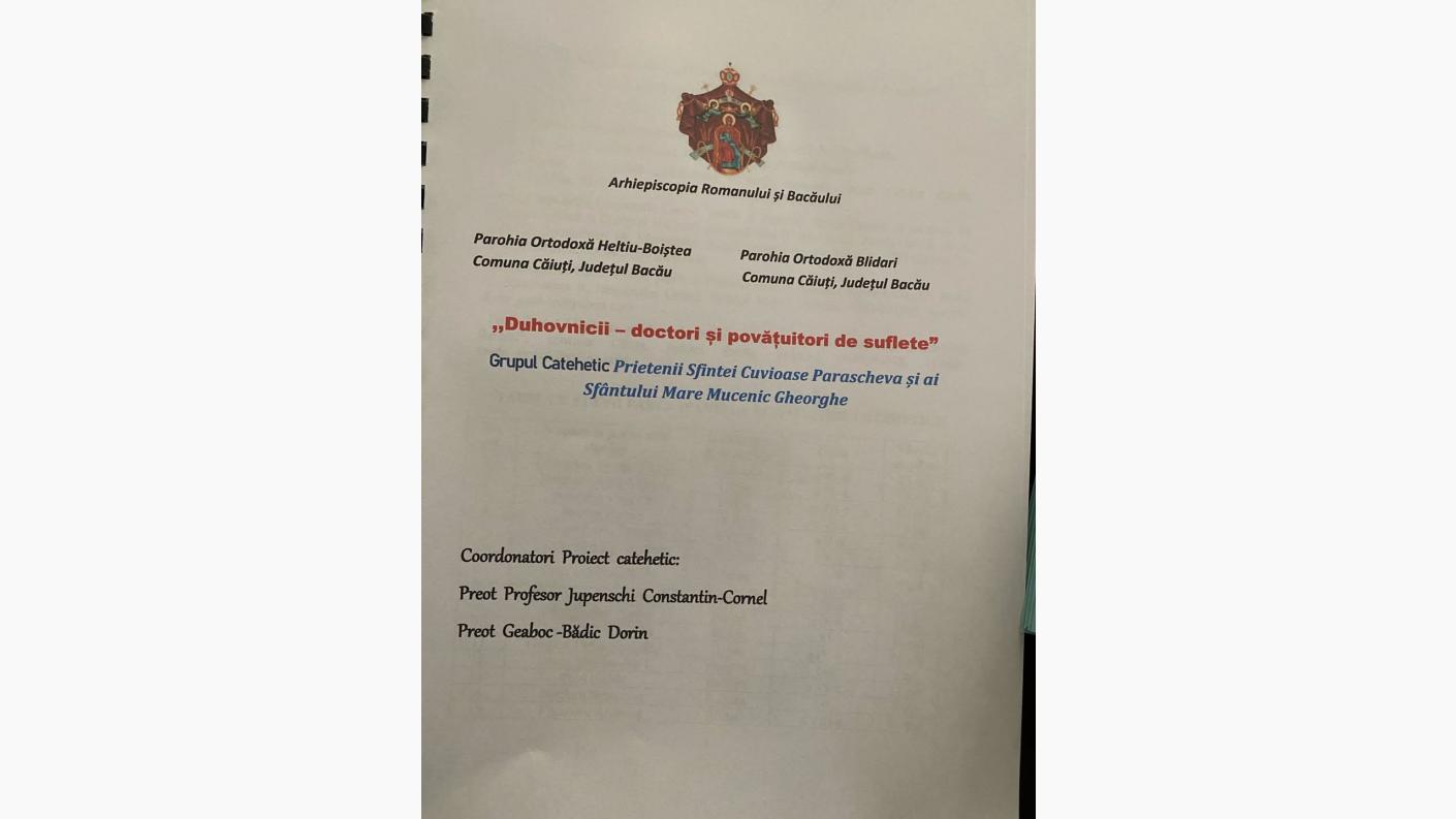 În data de 11.04.2025 a avut loc, la sediul Protopopiatului Onești, evaluarea locală a proiectelor participante la Concursul Naţional Catehetic din acest an: „Mărturisirea jertfelnică a dreptei credinţe – moştenirea unui secol de Patriarhat pentru copii şi tineri”. În această fază de evaluare au fost jurizate 11 proiecte ce au avut ca obiectiv principal valorificarea tezaurului istoric al Bisericii Ortodoxe Române, evidenţiind cele două aniversări ale ei: 140 de ani de autocefalie şi 100 de ani de patriarhat.