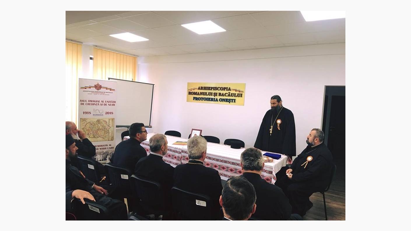 La finalul slujbei, imediat după momentul împărtășirii, în sala de festivități, Preacuviosul Părinte Pimen, Vicar Eparhial, a rostit un cuvânt de folos duhovnicesc și a felicitat pe toți preoții oneșteni, îndeosebi pe părintele protopop Ioan Bârgăoanu, pentru marea realizare, aceea de a dobândi acest frumos așezământ ca sediu. De asemenea, părintele protopop Ioan a adus mulțumiri tuturor părinților prezenți la eveniment și tuturor celor ce s-au ostenit, se ostenesc și susțin activitățile Protopopiatului Onești. Totodată au fost puse la punct ultimele detalii cu privire la “Pelerinajul în An Centenar” ce va avea loc zilele următoare în Cetatea Marii Uniri, Alba Iulia.