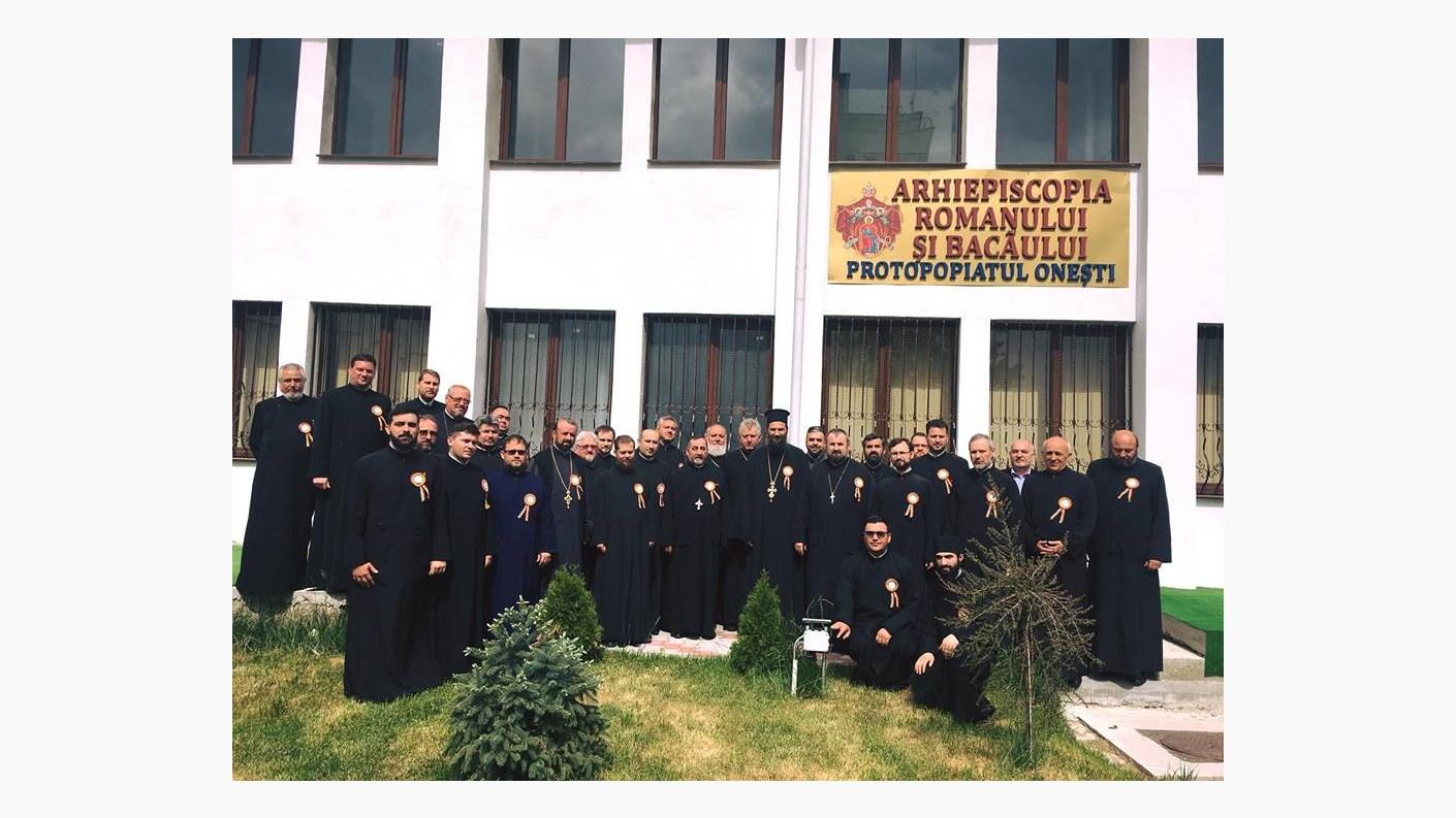 Cu binecuvântarea Înaltpreasfințitului Părinte Ioachim, Arhiepiscopul Romanului și Bacăului, la acest eveniment a fost prezent părintele Arhim. Pimen Costea, Vicar Eparhial, sub protia căruia s-a săvârșit Sfânta Liturghie. Răspunsurile la strană au fost oferite de Corala “Ierotheos” a preoților Protoieriei Onești.