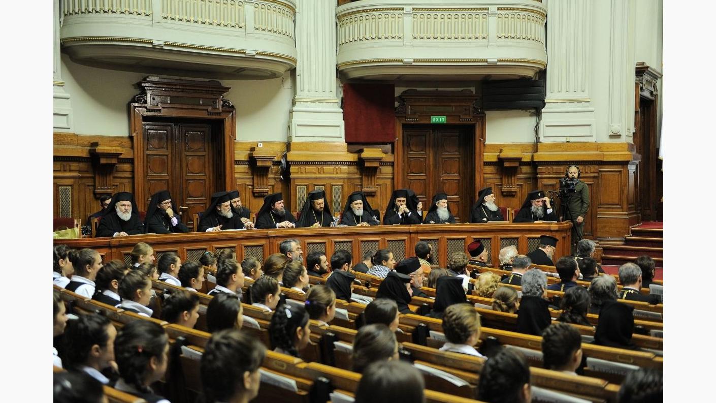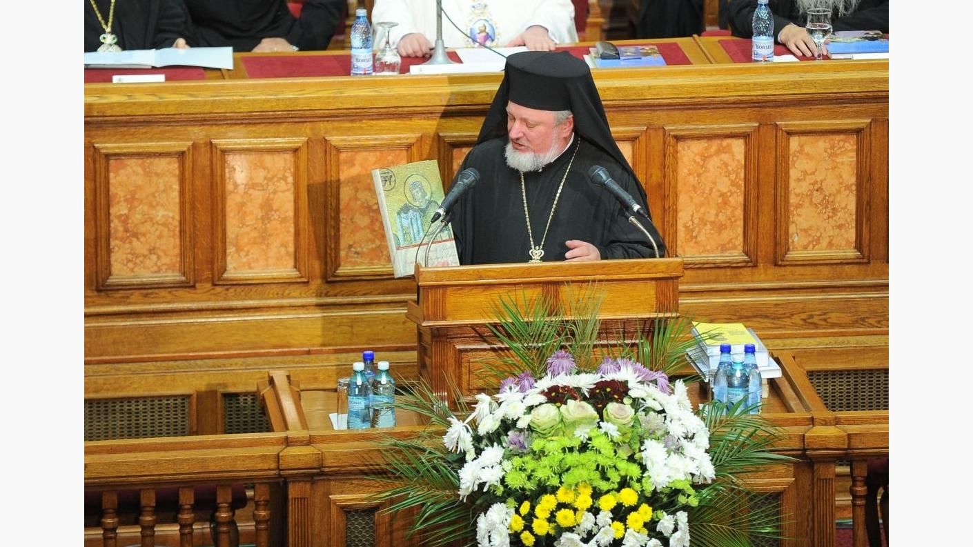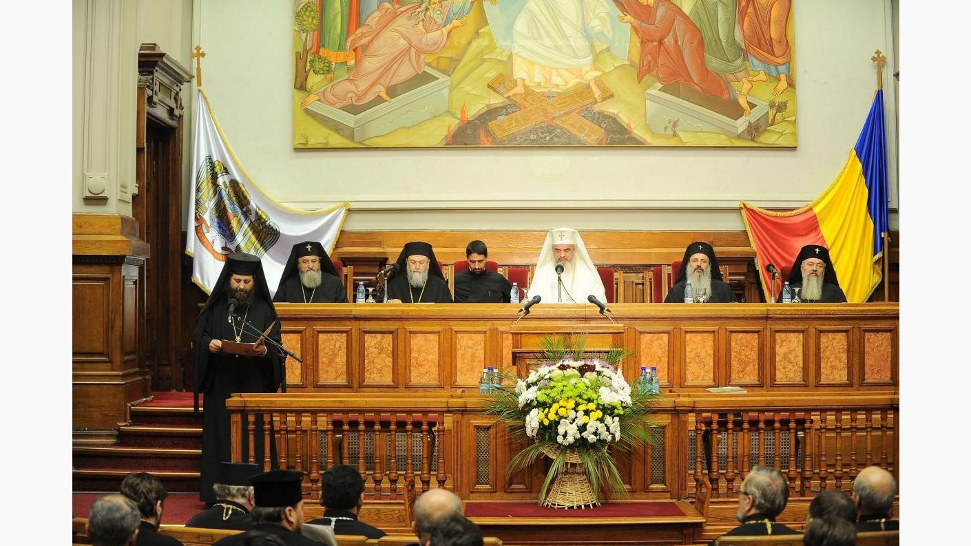 Şedinţa a continuat cu un cuvânt al Înaltpreasfinţitului Dionisie, Mitropolitul Corintului pentru acest eveniment. Părintele Mitropolit a vorbit, printre altele, despre Misiunea Bisericii Ortodoxe Române în aceste vremuri de criză: “În aceste timpuri de cumplită criză mondială, când lucrarea fărădelegii este promovată cu toată forţa, cu abilitate şi vestită pretutindenea în detrimentul preacuratei noastre credinţe ortodoxe, Preafericirea Voastră, Înaltpreasfinţiile şi Preasfinţiile Voastre, daţi mărturie despre Iisus Hristos cel Răstignit şi Înviat din morţi. Daţi această mărturie, deoarece Biserica Ortodoxă Română, nu numai că a renăscut „din cenuşă”, dar, mai ales astăzi, este în floare şi rodeşte spre slava lui Dumnezeu, Cel în Preasfânta Treime lăudat. În felul acesta, se confirmă faptul că existenţa umană, omul, conceput ca individ sau în viaţa sa de familie, ca membru al unui ethnos sau cetăţean al unui stat sau ca fiinţă socială, nu se poate transfigura altfel decât prin cuvântul Sfintei Evanghelii şi a Duhului Sfânt”.