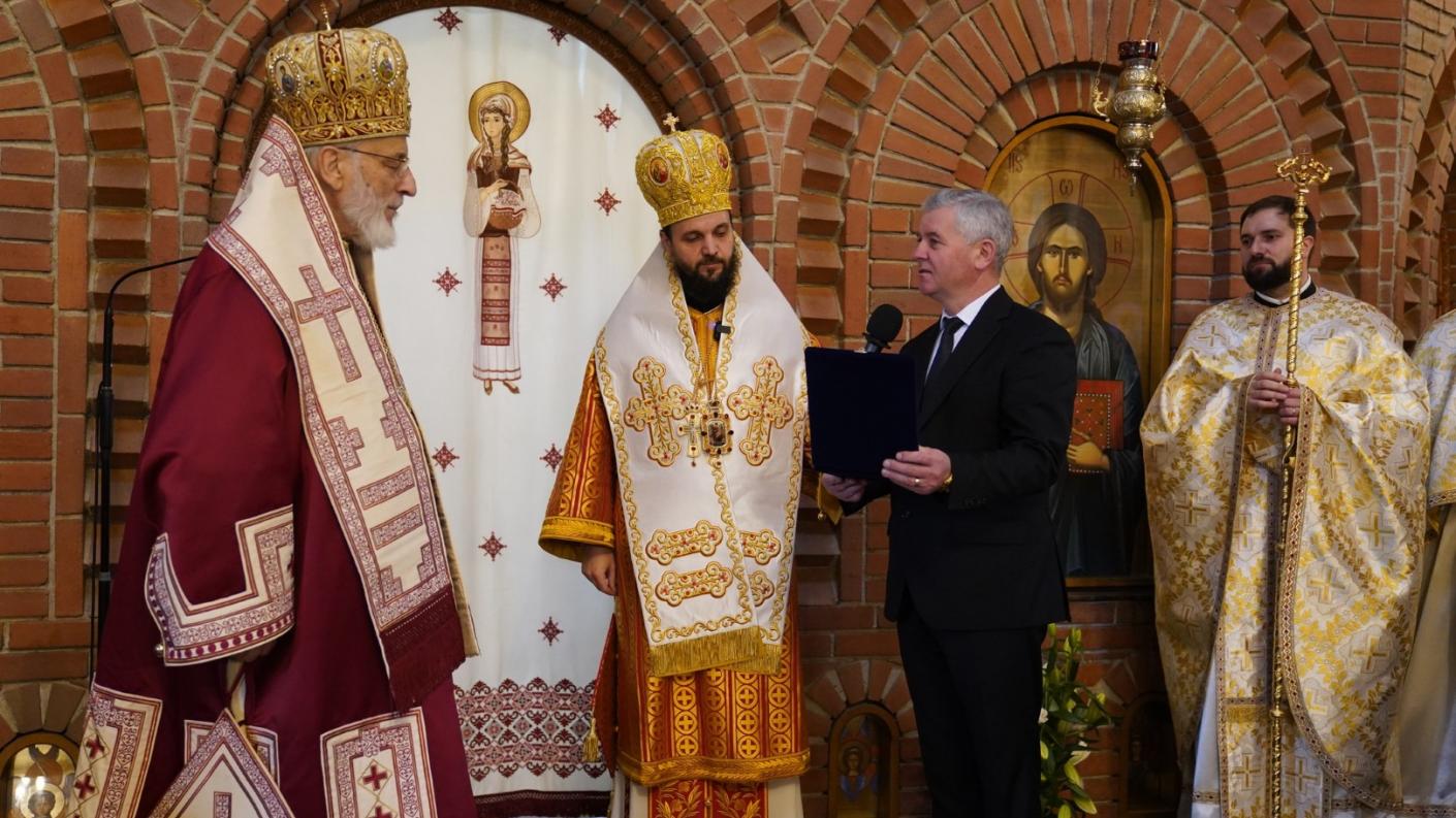 În încheiere, domnul Toma Constantin, primarul orașului Dărmănești, prezent la eveniment a oferit o Distincție de excelență și recunoștință pentru binecuvântarea și grija arătate comunității pe care o reprezintă de către ierarhul argeșean.