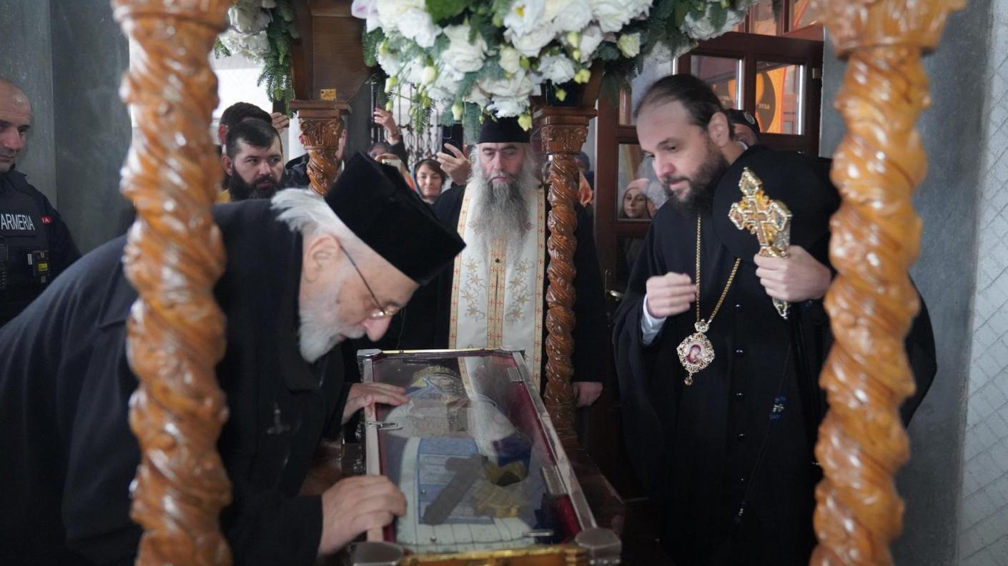 Sfânta Liturghie a fost săvârșită de Înaltpreasfințitul Părinte Calinic, Arhiepiscop al Argeșului și Muscelului, împreună cu Preasfințitul Părinte Teofil Trotușanul și un sobor de preoți și diaconi. Racla cu moaștele Sfintei Filoteea a fost așezată în pridvorul catedralei, pe un baldachin special pregătit, pentru a fi cinstită de miile de credincioși care au venit să se închine și să primească binecuvântare, informează Trinitas TV.