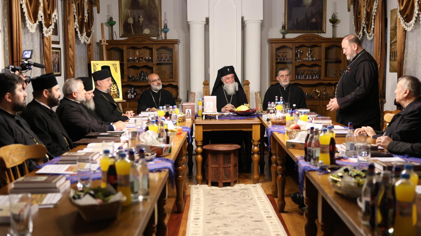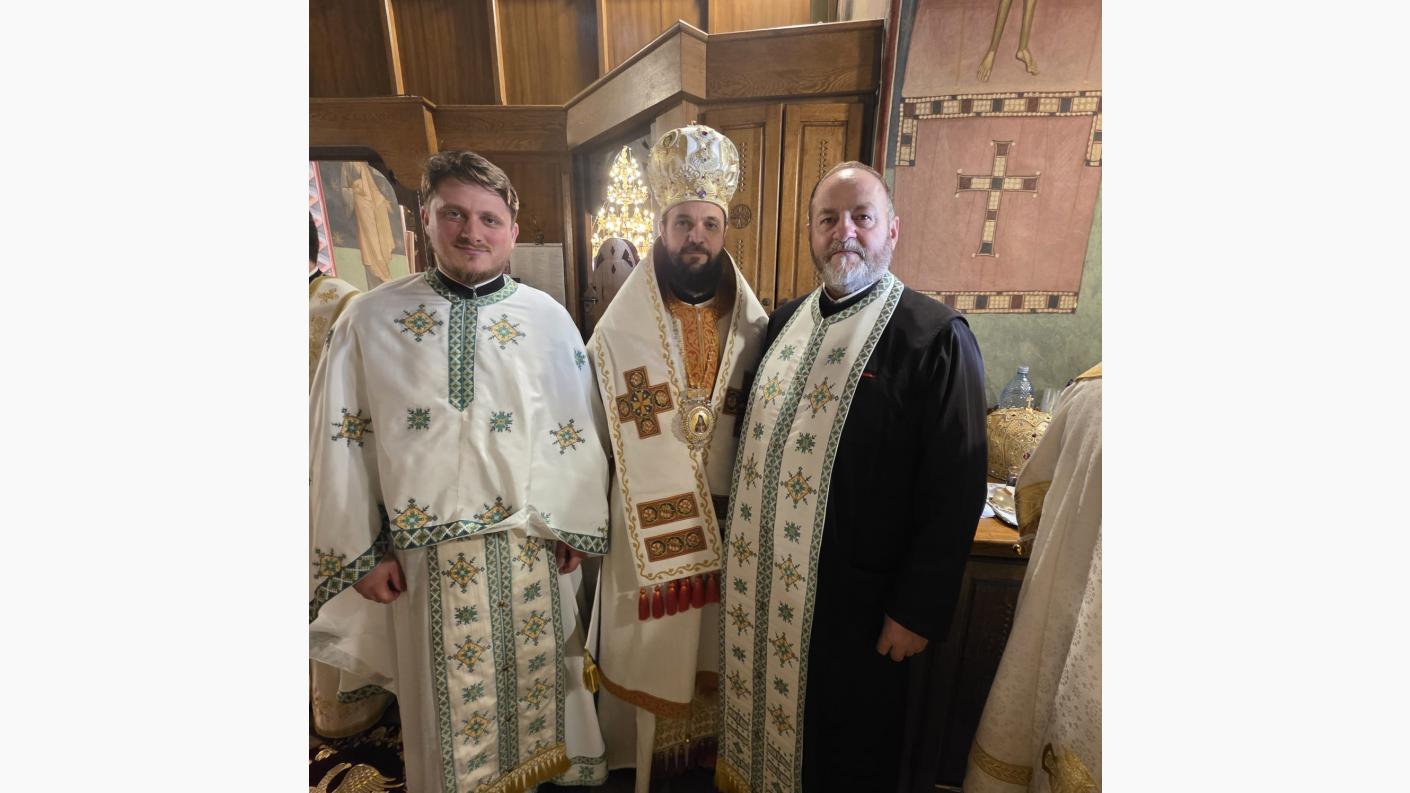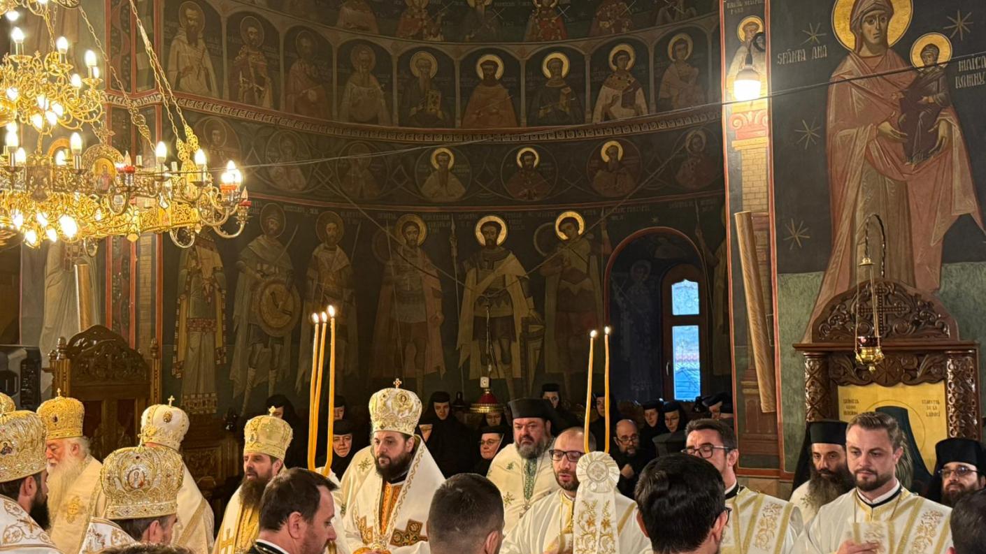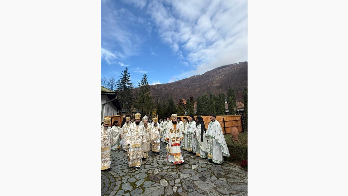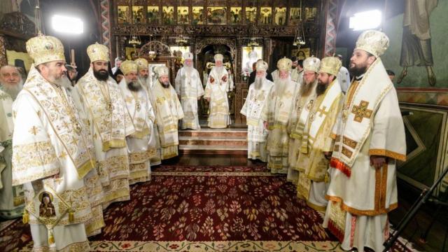 Sfânta Liturghie a fost săvârșită de un sobor de ierarhi ai Bisericii Ortodoxe Române, sub protia Înaltpreasfințitului Părinte Irineu, Mitropolitul Olteniei. Din sobor au făcut parte Înaltpreasfințitul Părinte Ioan, Mitropolitul Banatului, Înaltpreasfințitul Părinte Petru, Mitropolitul Basarabiei și Exarhul Plaiurilor, Înaltpreasfințitul Părinte Varsanufie, Arhiepiscopul Râmnicului, Preasfințitul Părinte Lucian, Episcopul Caransebeșului, Preasfințitul Părinte Nicodim, Episcopul Severinului și Strehaiei, Preasfințitul Părinte Antonie, Episcop de Bălți, Preasfințitul Părinte Sebastian, Episcopul Slatinei și Romanaților, Preasfințitul Părinte Andrei, Episcopul Harghitei și Covasnei, Preasfințitul Părinte Benedict, Episcopul Sălajului, Preasfințitul Părinte Nestor, Episcopul Devei și Hunedoarei, Preasfințitul Părinte Gherontie Hunedoreanul, Arhiereu-vicar al Episcopiei Devei și Hunedoarei, și Preasfințitul Părinte Teofil Trotușanul, Episcop-vicar al Arhiepiscopiei Romanului și Bacăului.