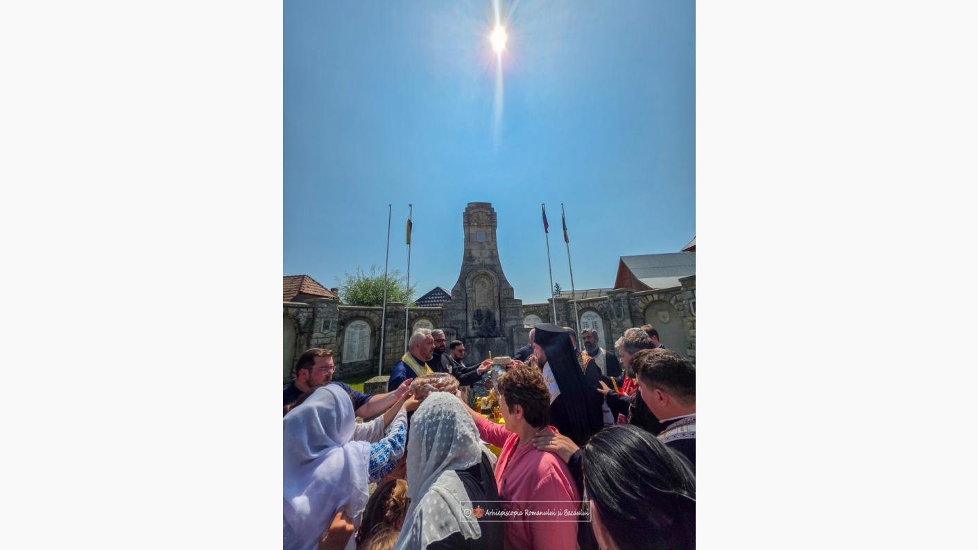 Sub picioarele noastre, dragii mei, este pământ sfințit cu sângele lor. De aceea ne aducem aminte de ei și îl rugăm pe Dumnezeu să primească jertfa și, cum zice și rugăciunea pe care am citit-o, dacă aici, pe pământ, au fost cinstiți ca viteji, ne rugăm ca, dincolo, Dumnezeu să-i așeze în ceata mucenicilor, iar pe noi să ne binecuvânteze, să putem prețui ceea ce ei au săvârșit. Ori de câte ori ridicăm colacul întru pomenirea lor, să ne aducem aminte că și noi trebuie să rămânem uniți. Cum boabele de grâu, împreună, fac pâinea și colacul sau coliva, tot la fel, numai împreună putem să fim puternici.