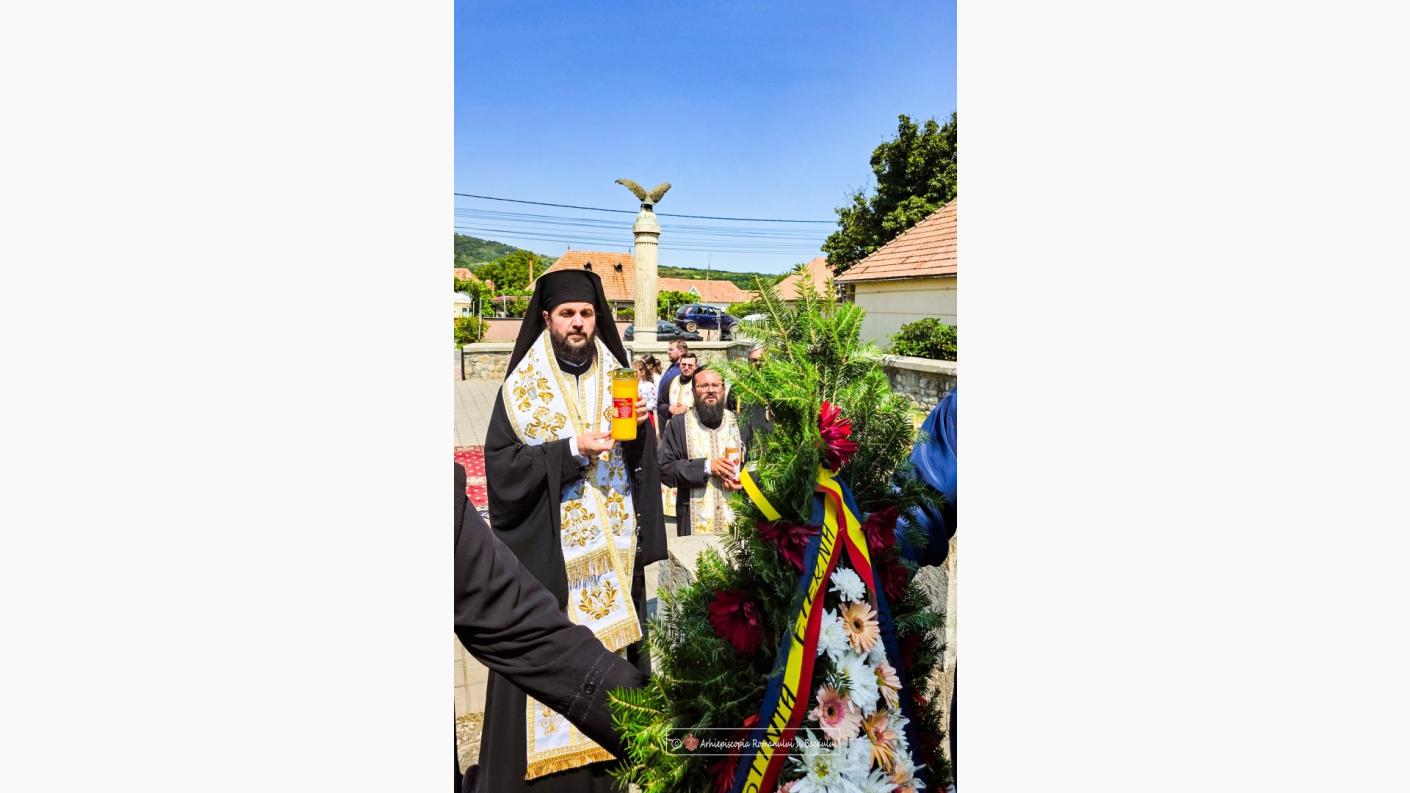 În mijlocul lor s-a aflat Preasfințitul Părinte Teofil Trotușanul, Episcop-vicar al Arhiepiscopiei Romanului și Bacăului, în calitate de delegat al Înaltpreasfințitului Părinte Arhiepiscop Ioachim, alături de care s-a aflat pr. Nicolae Zaharia, protopopul locului, un sobor de preoți și diaconi. Preasfințitul Părinte Teofil a rostit, cu acest prilej, un cuvânt de cinstire a memoriei celor care și-au dat viața pentru apărarea patriei, explicând și semnificația jertfei folosite în slujbele de pomenire a celor adormiți: