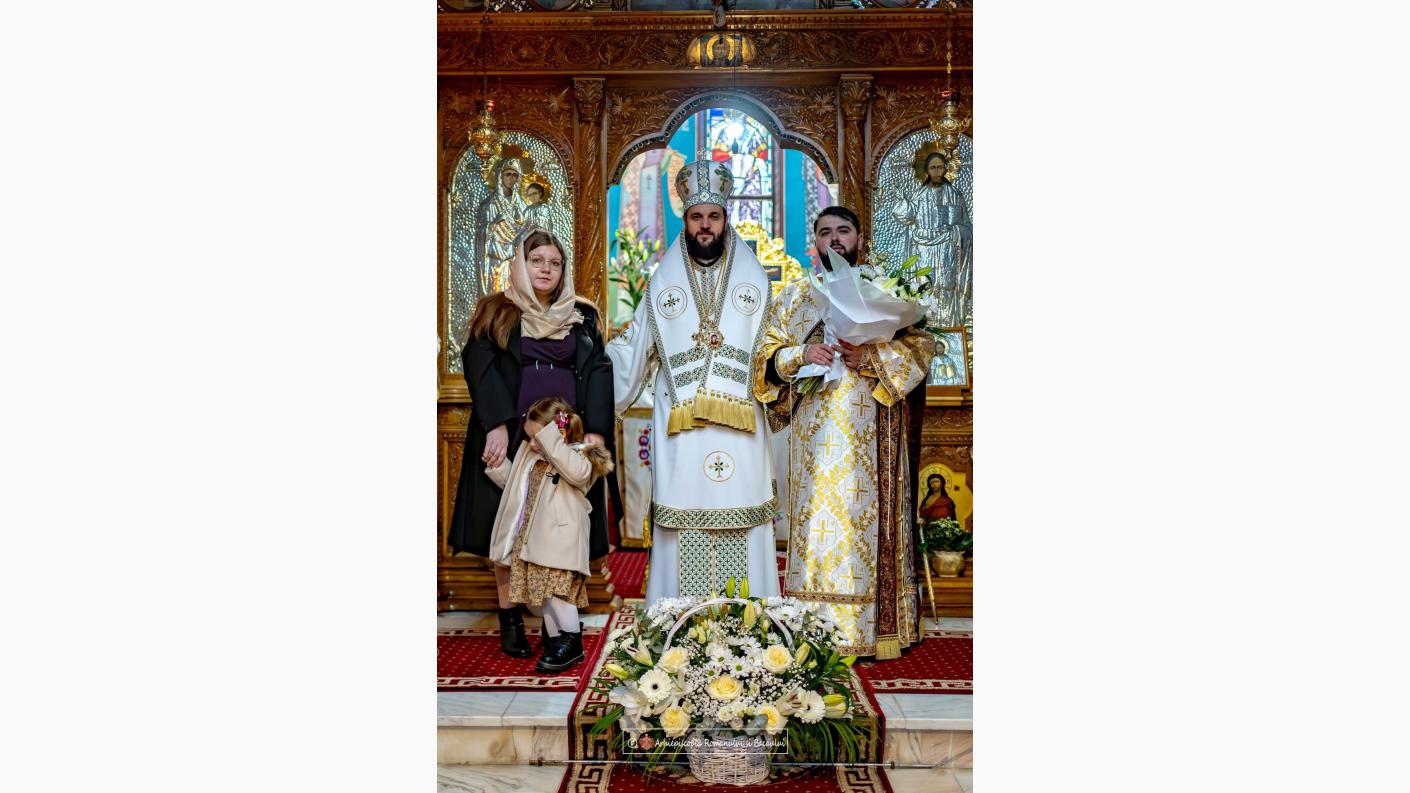 „Îi felicităm pe cei doi noi slujitori care au primit astăzi harul Preasfântului Duh prin taina hirotoniei, că, prin binecuvântarea în al Preasfințitului Părintelui nostru Ioachim, au fost rânduiți a fi hirotoniți. Ați ascultat cu atenție și rugăciunile speciale pe care le facem atunci când este hirotonit un nou slujitor. El este adus în fața Sfântului Altar, îngenunchează în fața Sfintei Mese, care simbolizează mormântul Domnului și acolo stând în genunchi, cu capul plecat pe colțul drept al Sfintei Mese, precum a stat odinioară Evanghelistul Ioan pe pieptul Mântuitorului Hristos, se roagă și primește harul Preasfântului Duh de a sluji Sfântului Altar. Să îi ajute Domnul ca această slujire să fie cu folos, acolo unde vor ajunge în parohiile rânduite și să nu uite că urmarea Lui Hristos presupune și jertfă, presupune purtarea crucii și mai ales presupune să îl iubim pe Dumnezeu mai mult decât orice. Dacă Îl vom iubi pe Domnul, nimic nu ni se va părea prea greu. Dumnezeu să vă întărească, să vă ajute, părinților, să aveți o slujire duhovnicească și cu folos. (....)