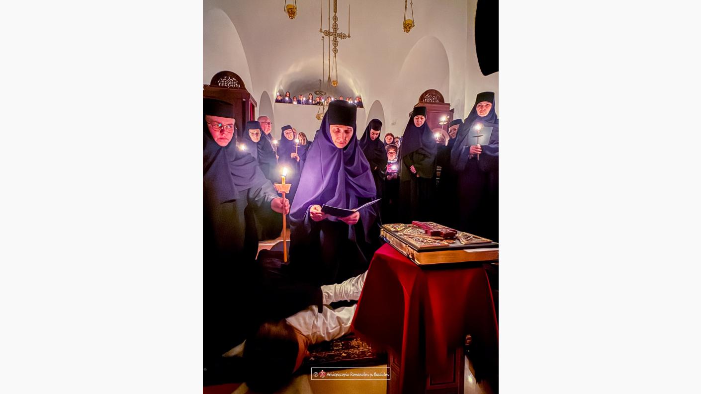 După oficierea slujbei de Priveghere, Preasfințitul Părinte Teofil a săvârșit slujba tunderii în monahism pentru rasoforele care au primit nume noi de călugărie: Isidora, Arsenia și Platonida. Alegerea vieții monahale semnifică răstignirea pentru lume a celor care își consacră viața lui Dumnezeu, alegând să rămână în starea de continuă rugăciune și de ascultare.