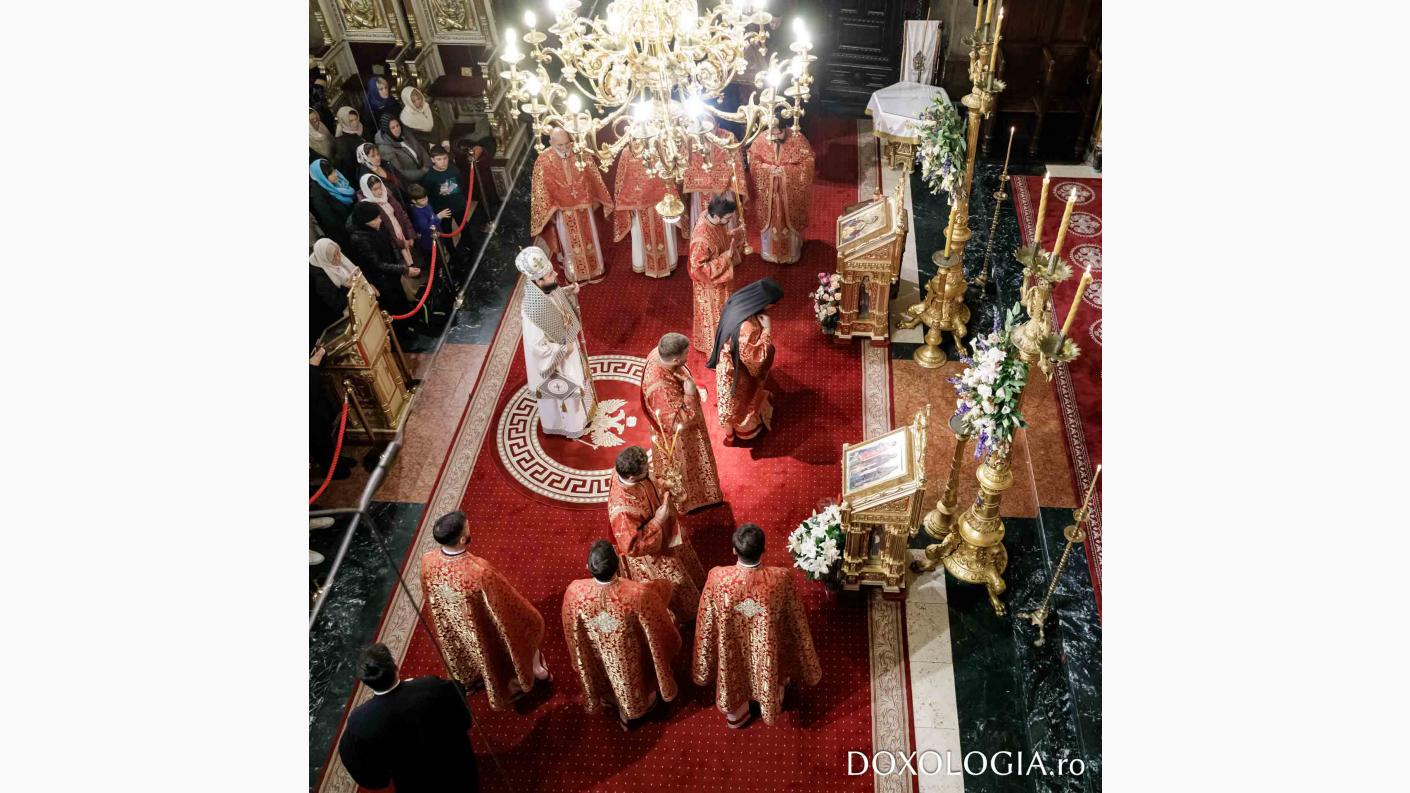 Pelerinii care au venit să se închine la racla cu moaștele Ocrotitoarei Moldovei au poposit pentru câteva momente și la Catedrala Mitropolitană, participând la Dumnezeiasca Liturghie oficiată de ierarhul romașcan.