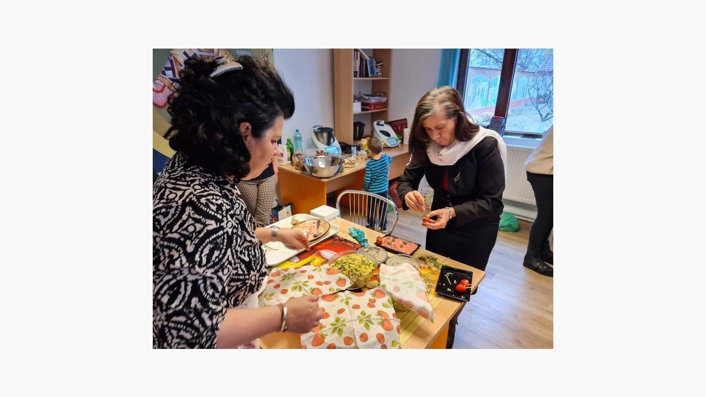 La Centrul de zi „Sfânta Filofteia” s-au adunat membrii grupului 50+ si copiii de la programul After-School al Parohiei, în cadrul unei activități gastronomice intergeneraționale, care a îmbinat bucătăria tradițională de post cu retete raw-vegane din zona mediteraneeană și a Asiei Mici. S-au pregatit preparate precum Salata Tabouleh, roșii umplute cu pate de migdale, dar și bunătățuri autohtone și tradiționale, precum turta dulce. Astfel, activitatea precedentă „Dialog între Generații” a continuat într-un mediu practic, în care membrii ambelor grupe au lucrat cot la cot.