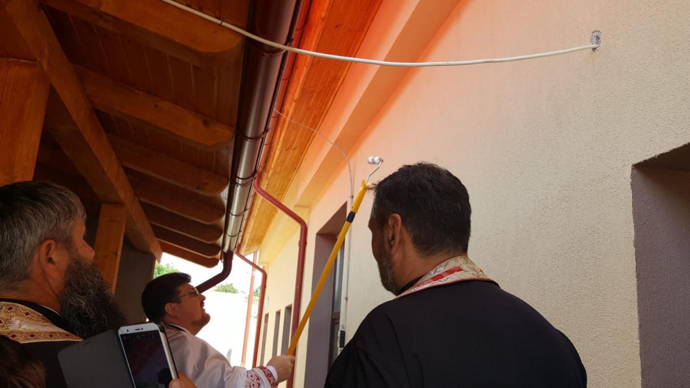 Prin grija părintelui paroh Timoșenco Florin, de la Parohia Petrești, slujba sfințirii agheasmei celei mici s-a oficiat de către preoții din parohiile comunei Pîncești, sub protia părintelui protopop Vasile Abageru, care a evidențiat în cuvântul său importanța noului așezământ cultural, subliniind faptul că tinerii de astăzi au datoria de a cultiva și de a continua tradițiile și obiceiurile strămoșești, care au o deosebită valoare pentru întărirea unității de credință și de neam.