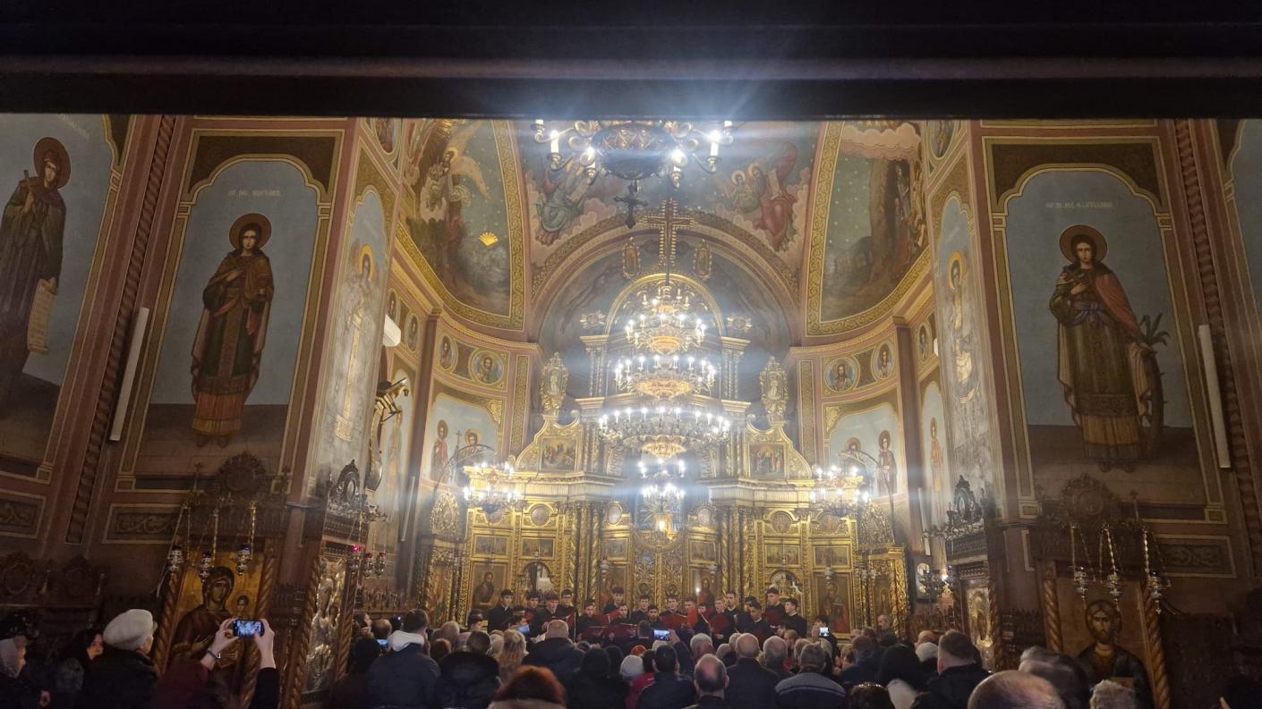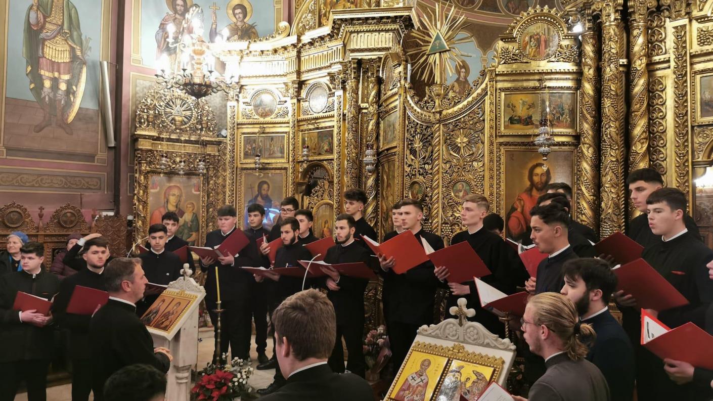 Impresionanta ctitorie a căminarului Cristea (1850), pe care credincioșii băcăuani o numesc în mod convențional „catedrala dalbă”, pe 20 decembrie 2024, de pomenirea sf. Ignatie al Antiohiei – sfântul care, conform tradiției, copil fiind, fusese ridicat în brațe de Mântuitorul pe când adresa îndemnul „cine va primi pe un copil ca acesta întru numele Meu, pe Mine mă primește” cf. Matei 18,5 – a fost locul unei întâlniri de suflet a creștinilor închinători ai bisericii cu elevii Liceului Teologic „Episcop Melchisedec” Roman. În cadrul unui parteneriat binecuvântat de Înaltpreasfințitul Părinte Ioachim, Arhiepiscopul Romanului și Bacăului, elevii de învățământ seminarial au prezentat, sub conducerea muzicală a părintelui Vlad Nicolae Samoilă, un repertoriu specific perioadei Postului Nașterii Domnului, cuprinzând pagini din imnografia marelui praznic împărătesc, cât și colinde compuse de chiriarhul Romanului și Bacăului, piese apreciate de către dreptmăritorii creștini veniți să îi asculte pe tinerii colindători. Această activitate a fost posibilă cu bunăvoința părinților slujitori ai sfântului locaș, pr. Ioan-Nelu Ciobanu, pr. Ciprian-Mihai Olteanu, și mai ales a părintelui paroh Eduard Vasile Cozma, profesor de dogmatică ortodoxă în cadrul liceului teologic romașcan. În încheierea reprezentației, părintele paroh a luat cuvântul, explicând într-o expunere inspirată însemnătatea colindului ca manifest al învățăturii de credință despre întruparea Fiului lui Dumnezeu, act central al lucrării mântuitoare a lui Dumnezeu Cuvântul în vederea ridicării neamului omenesc. În încheiere, părintele a mulțumit Înaltpreasfințitului Părinte Ioachim pentru binecuvântarea acordată realizării acestui eveniment, felicitând și premiind elevii de învățământ seminarial ce au susținut această veritabilă cateheză muzicală. Emoția specifică transmisă participanților la acest tip de activitate, care la biserica Sf. Nicolae din Bacău a devenit, prin bunăvoința părinților amfitrioni, tradiție anuală, este exprimată în chip minunat de versurile Înaltpreasfințitului Părinte Ioachim:
