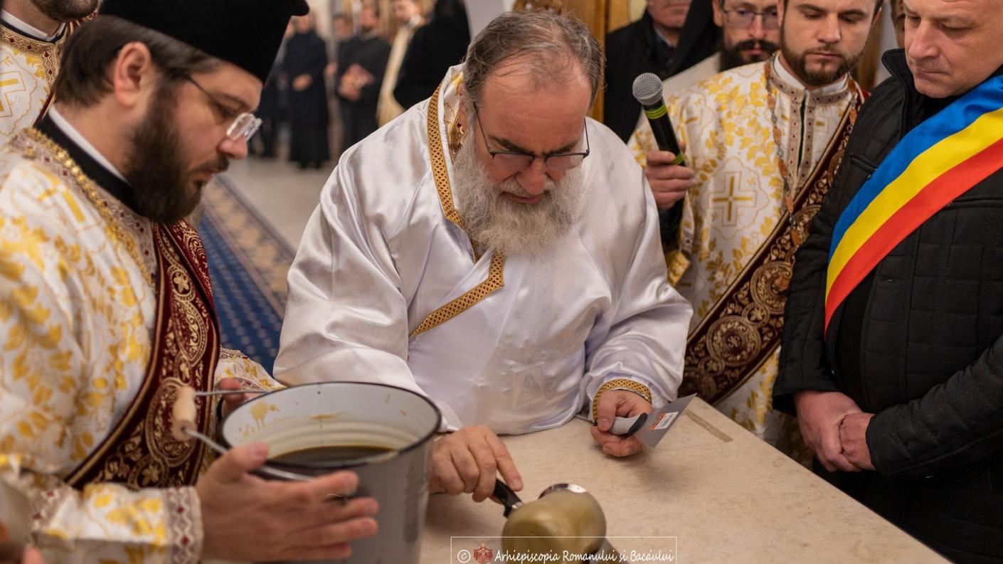 Ansamblul eclesiastic a primit pecetea sfințirii prin târnosirea noului altar, de mâinile harice ale Înaltpreasfințitului Părinte Ioachim. Datorită nevoilor pastorale, misionare și catehetice, sub directa binecuvântare a ierarhului eparhiei noastre și prin atenta grijă și coordonare a Preacuviosului Părinte Protosinghel Nicolae Dănilă, Starețul Mănăstirii Giurgeni și Exarhul administrativ al Eparhiei Romanului și Bacăului, în decurs de șase săptămâni s-a purces la executarea lucrărilor de restaurare și reînnoire.