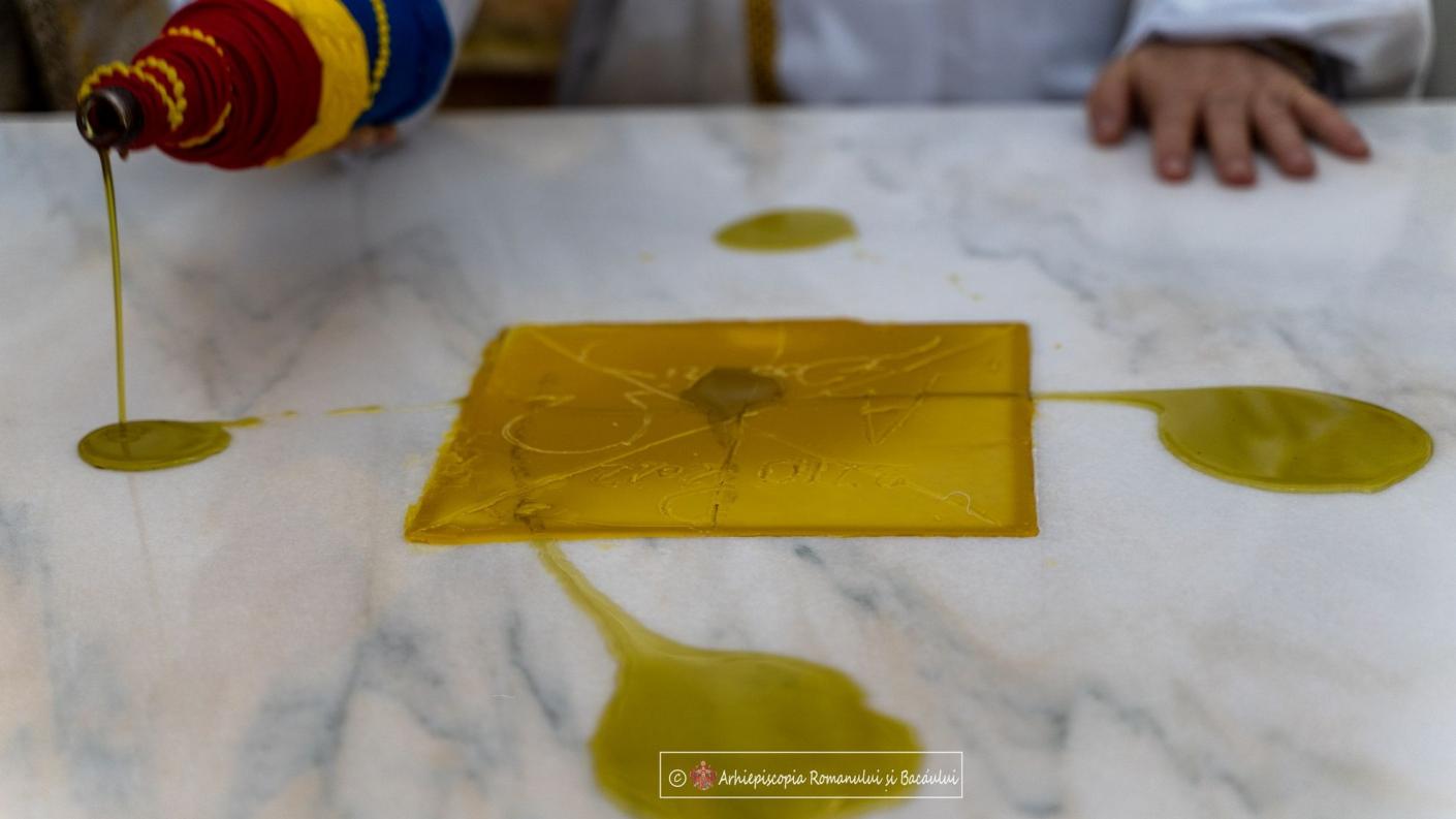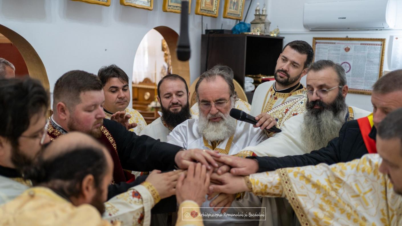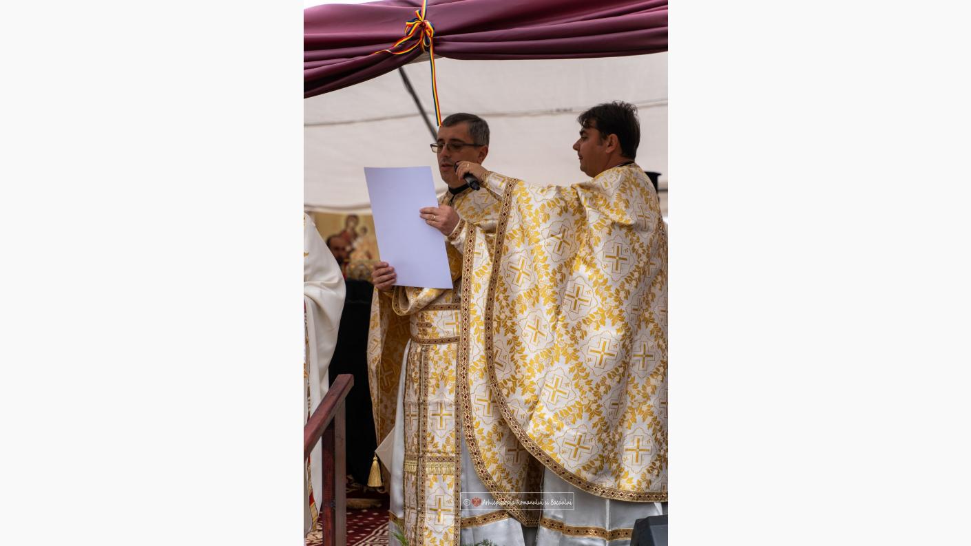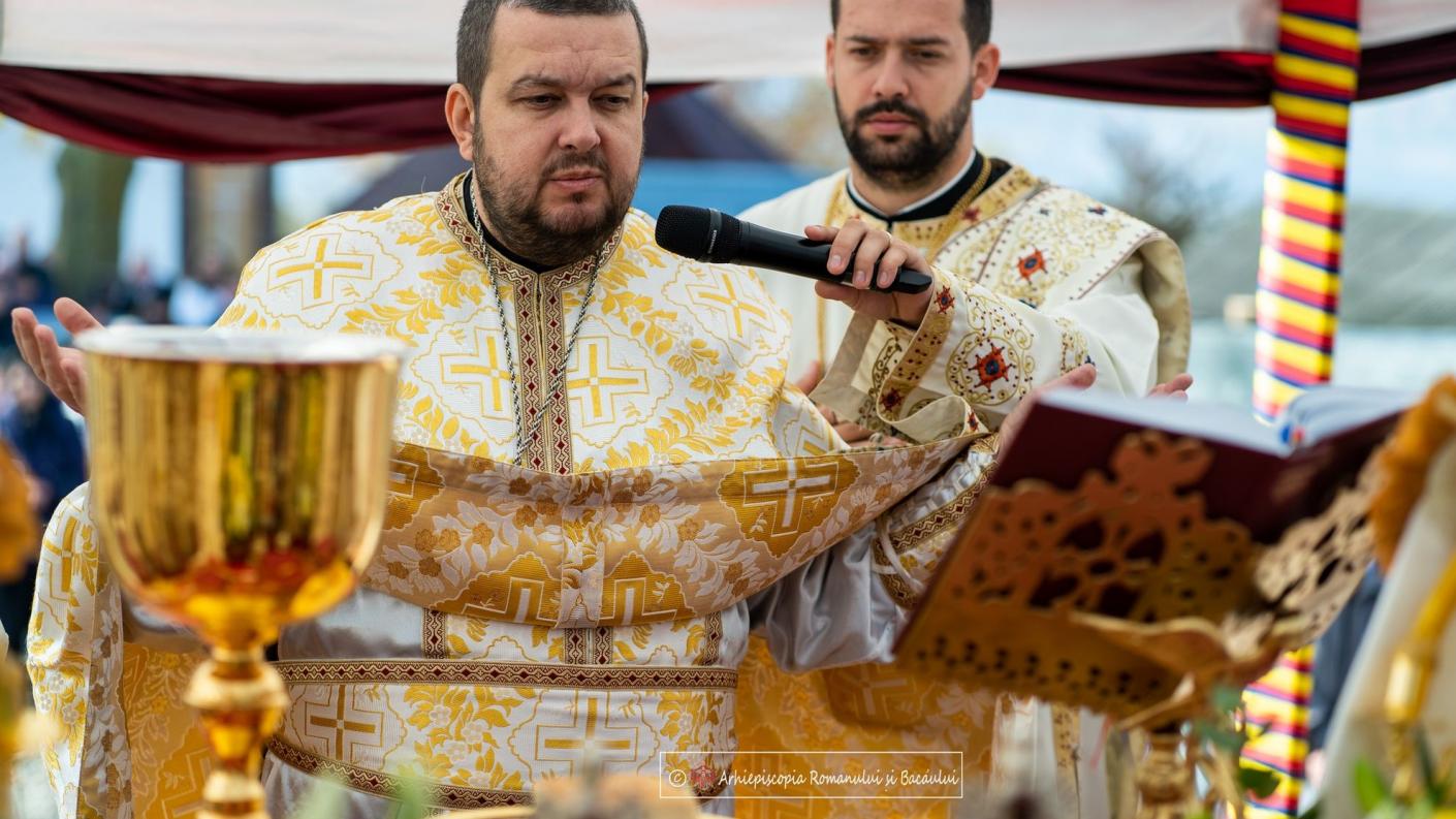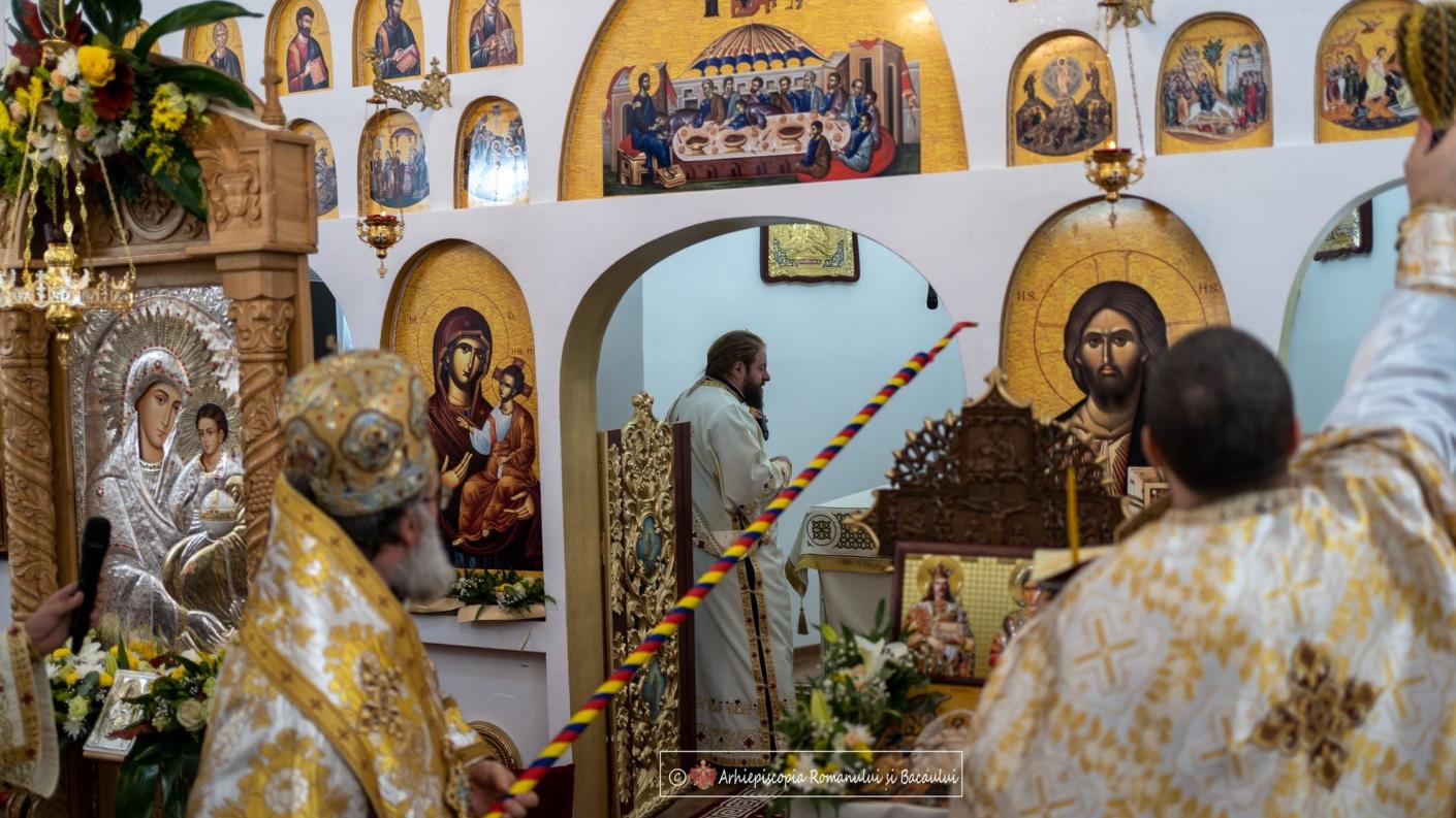 Sfânta Liturghie a fost săvârșită pe o scenă, amenajată în proximitatea bisericii parohiale, de un sobor de preoți și diaconi, aflați sub protia părintelui Dan Alexandru Antoce, Protopop de Roman.