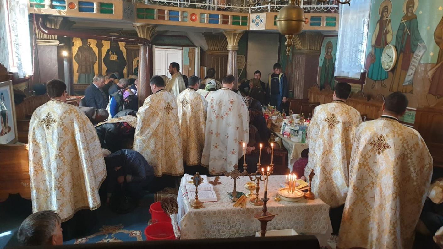 La invitația părintelui paroh Cojocaru Marian, au fost prezenți părintele consilier Ciuche Eugen, părintele secretar Abageru Vasile, unde împreună cu un sobor de preoți din cercul pastoral, coordonați de părintele Iftenie Mihăiță, au săvârșit slujba Aghiasmei și Taina Sfântului Maslu, la care au participat credincioșii parohiei.