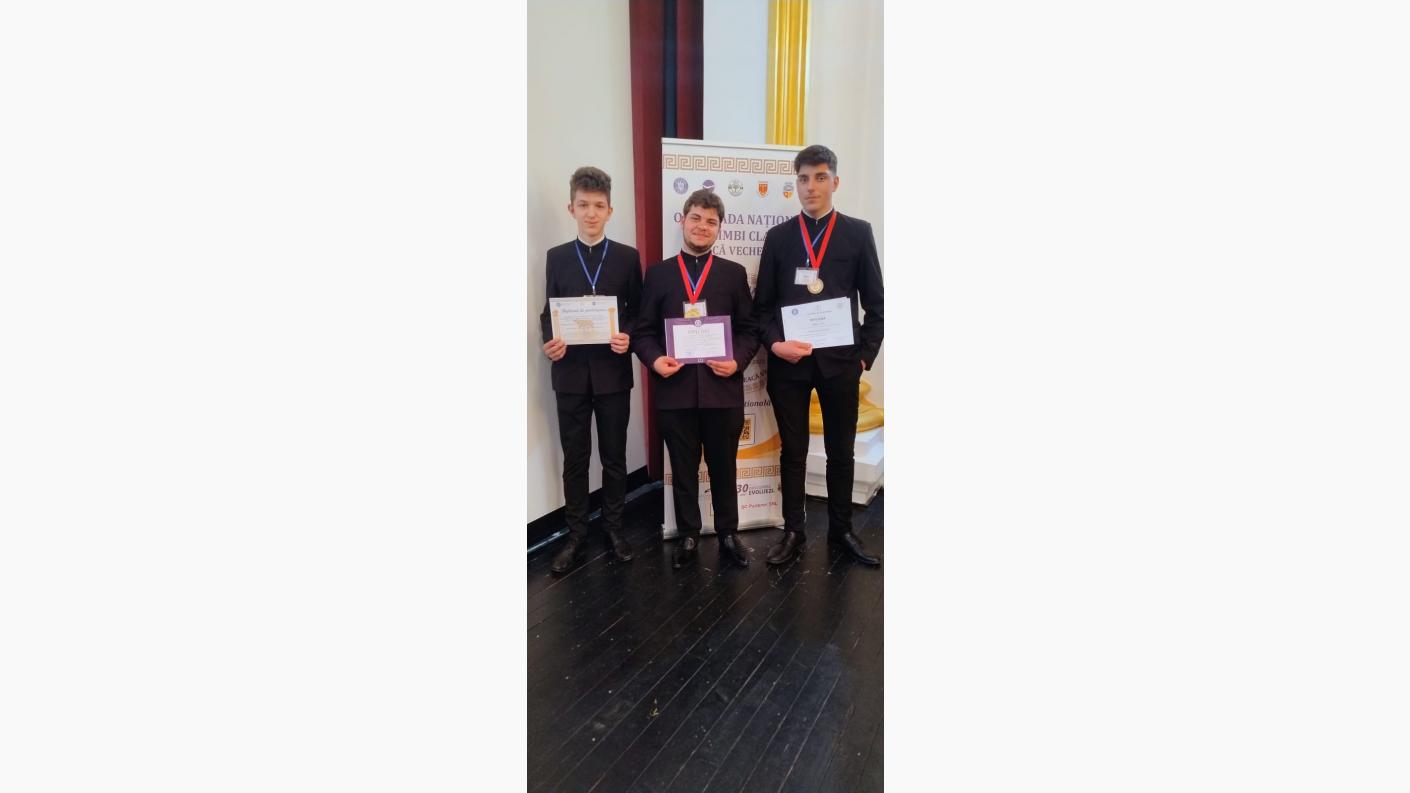 Pregătiți de domnișoara profesor Stoica Anamaria Irina, trei elevi ai Liceului Teologic "Episcop Melchisedec" Roman au obținut dreptul de a participa la competiția de la Galați, organizată în perioada 27 - 30 aprilie, în urma rezultatelor excelente obținute la faza județeană a Olimpiadei Naționale de Limbi clasice, din 21 martie. Elevii Anghel Ștefan-Adrian - clasa a IX-a, Gherla Ioan și Negoț Răzvan-Gabriel, ambii în clasa a X-a, au participat la această competiție școlară de anvergură, obținând, cu toții, punctaje foarte bune. Cea mai importantă realizare constituie obținerea premiului al doilea în proba rezervată elevilor de clasa a X-a de Negoț Răzvan Gabriel, deopotrivă și a medaliei de aur oferite acestuia de Societatea de studii clasice. Colegul său, Gherla Ioan, a obținut, la rându-i, medalia de bronz oferită de aceeași instituție. Comunitatea liceului teologic romașcan felicită cei trei participanți la Olimpiada națională de limbi clasice, precum și pe magistrul lor, domnișoara profesor Stoica Anamaria Irina. Domnia sa pregătește, cu multă pricepere și stăruință, an de an, seminariștii romașcani aplecați spre studiul acestei discipline, parte integrantă a unui ethos sănătos de învățământ seminarial, din moment ce în cunoașterea Cuvântului studiul biblic face recurs, invariabil, la nevoia de știință a limbii eline vechi, în care ne-a fost revelată Vestea cea bună a mântuirii.