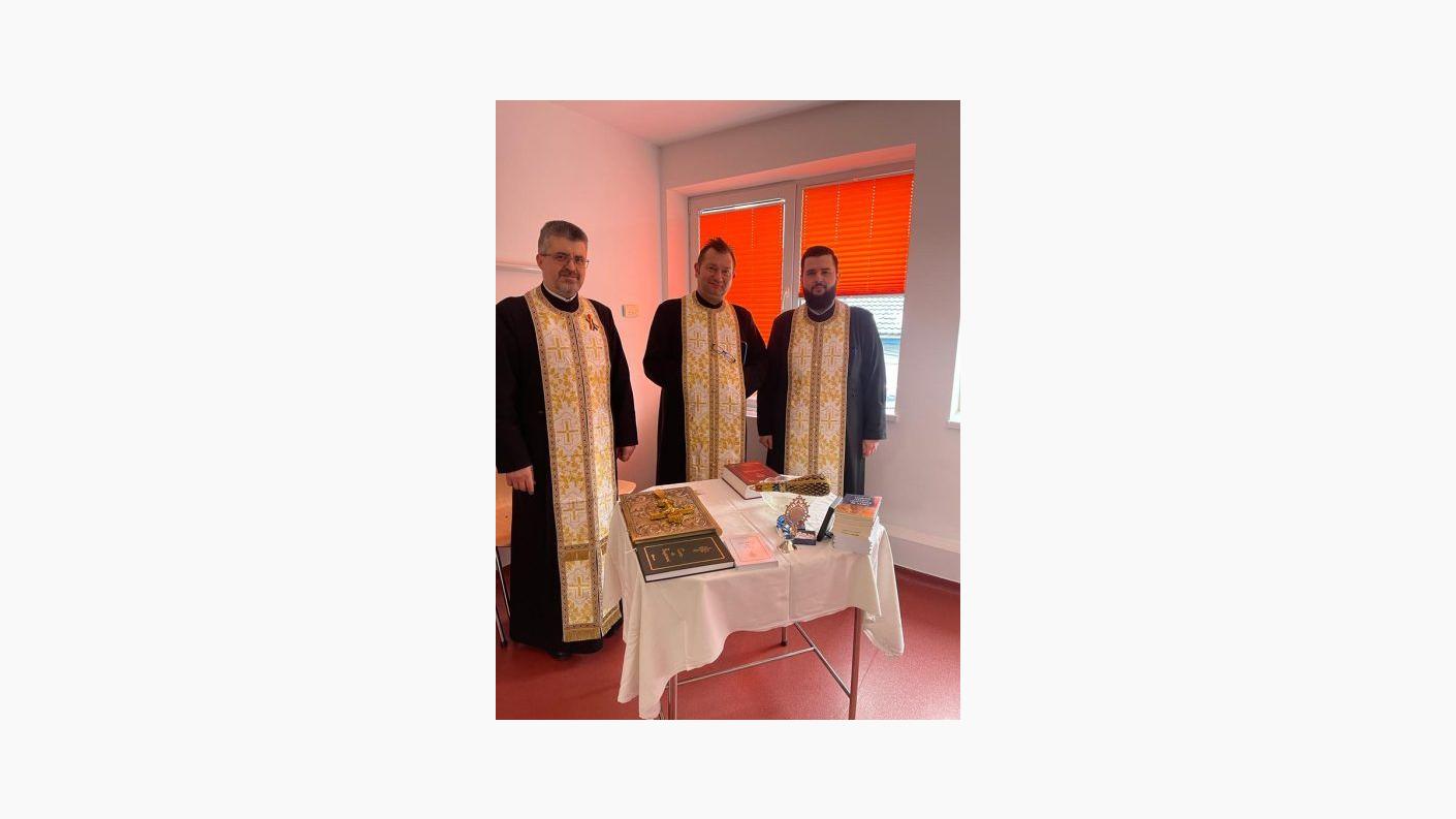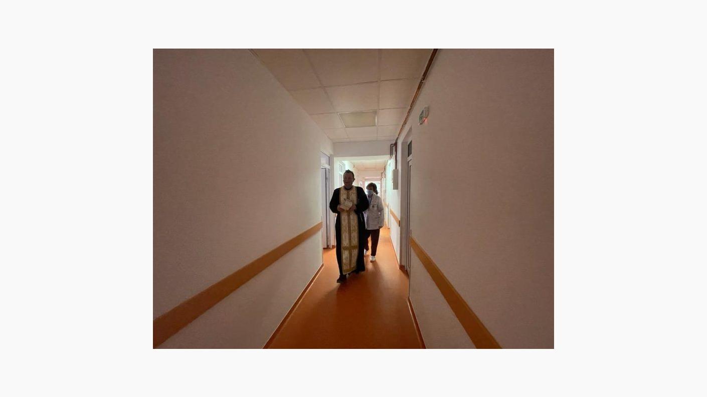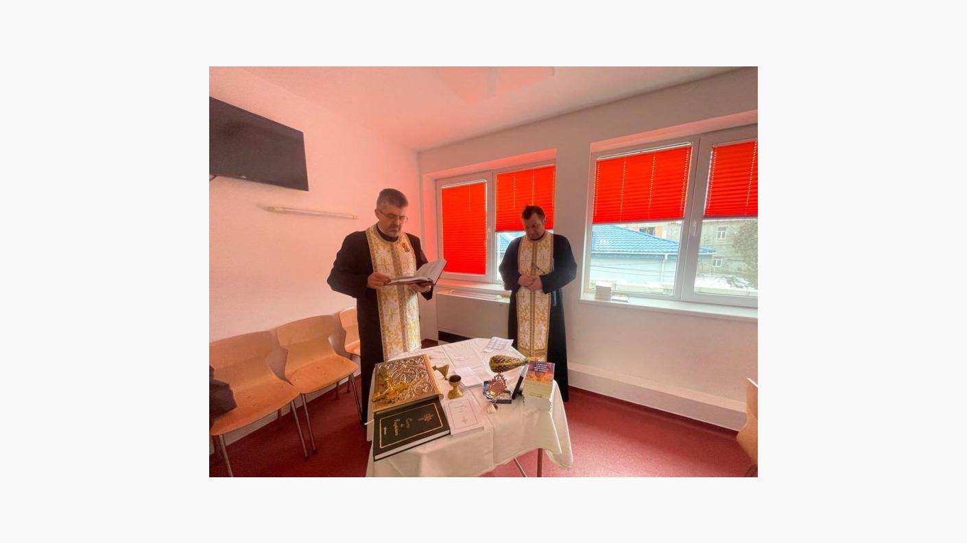 La orele 13:00, în timpul programului de vizitare al secției, alături de medici și personalul medical auxiliar, părintele Dan Rusu, slujitor al Capelei „Sfântul Pantelimon” din cadrul instituției medicale, părintele Constantin Abageru, parohul bisericii „Sfinții Apostoli” din Bacău și părintele Răzvan-Dimitrie Radu, asistentul social al Protoieriei Bacău și delegatul părintelui protoiereu Eugen-Ciprian Ciuche, au săvârșit slujba agheasmei mici, au rostit rugăciuni alcătuite de către ierarhul nostru, de binecuvântare și miluire a bolnavilor, dar și a celor care se ostenesc în slujba acestora, medici, asistenți și infirmieri.