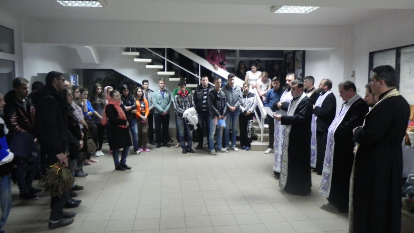 La inițiativa tinerilor din cadrul Asociației Studenților Creștini Ortodocși din România (ASCOR) –filiala Bacău și a Biroului de Tineret al Arhiepiscopiei Romanului și Bacăului, la Căminul studențesc al Universității ”Vasile Alecsandri” situat lângă Clubul “Știința” a avut loc joi, 5 noiembrie, ora 18.00, o slujbă de binecuvântare a studenților. Evenimentul, organizat cu binecuvântarea ÎPS Arhiepiscop Ioachim, a devenită un obicei în preajma postului Nașterii Domnului. Rugăciunea rostită de preoții și studenții băcăuani laolaltă, la scurt timp după începerea anului universitar, a făcut ca, și de această dată, ușile camerelor studenților să fie deschise pentru ca binecuvântarea Bunului Dumnezeu să se reverse asupra tuturor celor care studiază. În această comuniune, cei prezenți s-au rugat și pentru tinerii loviți de moarte năpraznică, fiind oficiat un parastas. La sfârșitul slujbei, preotul protopop Costică Busuioc a dat citire cuvântului părintesc de mângâiere al Preafericitului Patriarh Daniel către tineri, adresând și mesajul de binecuvântare din partea Înaltpreasfințitului Arhiepiscop Ioachim.