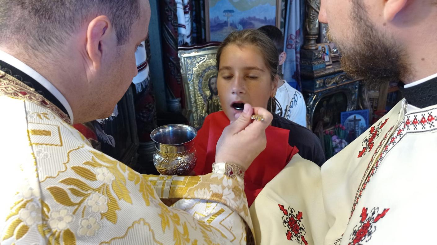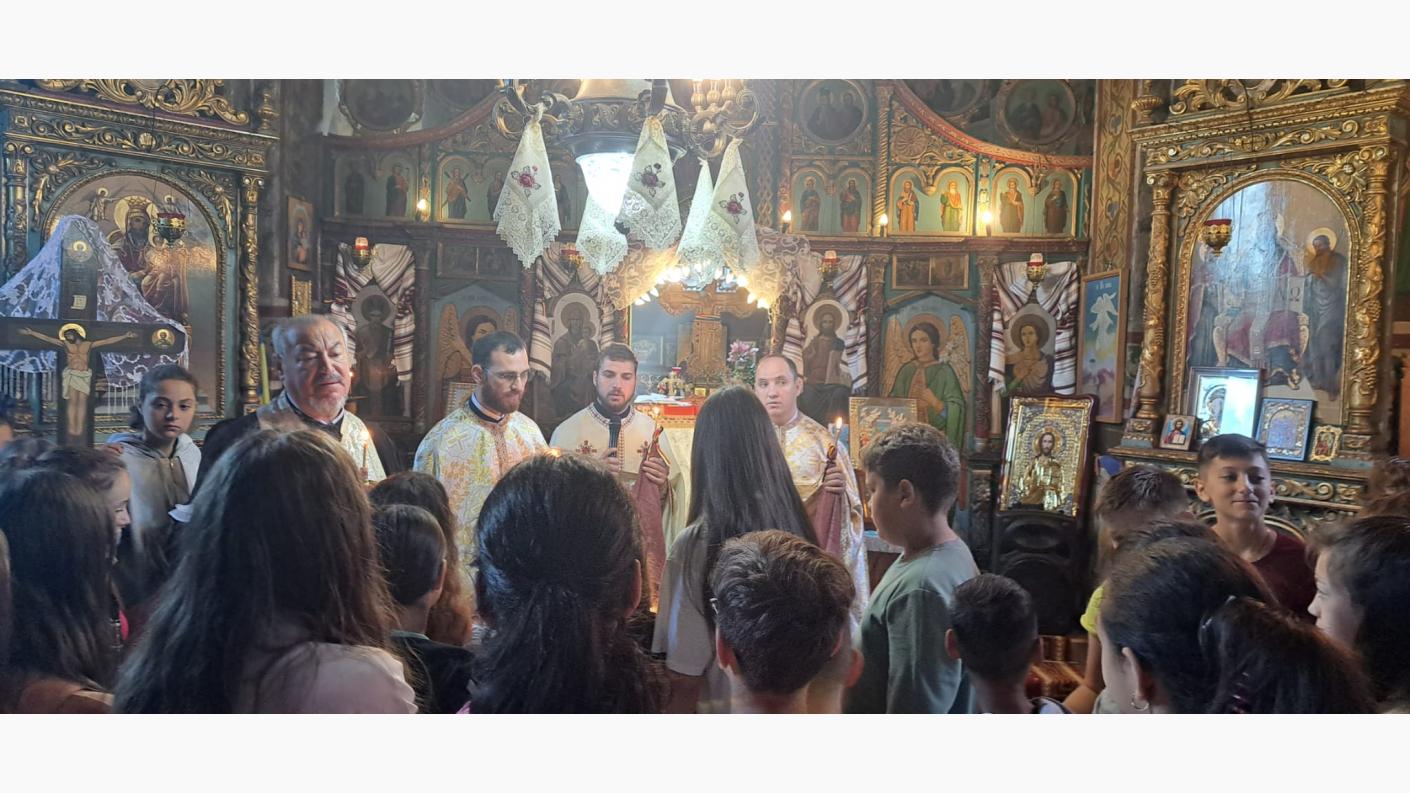 În cadrul Dumnezeieștii Liturghii, trilurile emise de vocile copiilor s-au împletit cu cele ale îngerilor, cei dintâi intonând cântările și rostind rugăciunile știute, iar pentru ca bucuria să fie deplină, cei prezenți s-au împărtășit cu Trupul și Sângele Domnului Iisus Hristos, iar la sfârșitul slujbei au primit dulciuri.