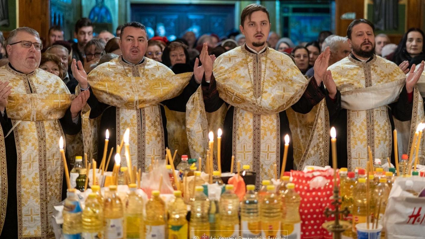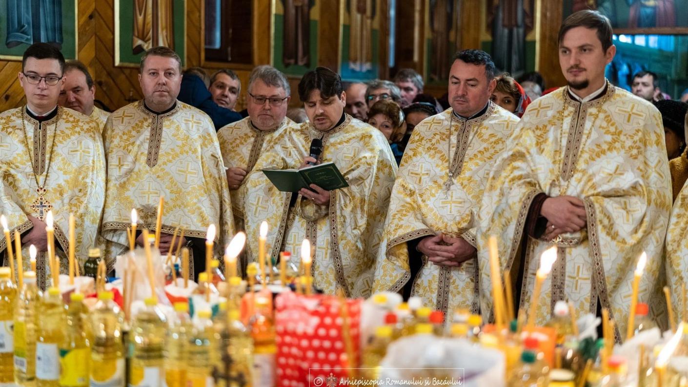 Astfel, începând cu ora 17.00, a fost săvârșită Taina Sfântului Maslu la care a participat și Înaltpreasfințitul Părinte Ioachim, Arhiepiscopul Romanului și Bacăului, citind rugăciunile de dezlegare și binecuvântând toată suflarea prezentă în această seară.