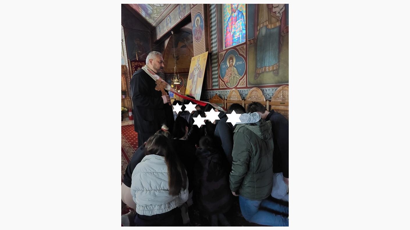 În același timp, alți tineri beneficiari ai centrului, ce se pot deplasa, înainte de a merge la școală, au poposit în Biserica „Sfinții Împărați Constantin și Elena”, din Onești, unde au fost întâmpinați de părintele protoiereu, Nicolae Zaharia. Acesta le-a vorbit despre post și despre importanța lui în viața oamenilor, precum și despre marele praznic al Învierii Mântuitorului Hristos, iar ulterior i-a spovedit și împărtășit cu Sfintele Taine.