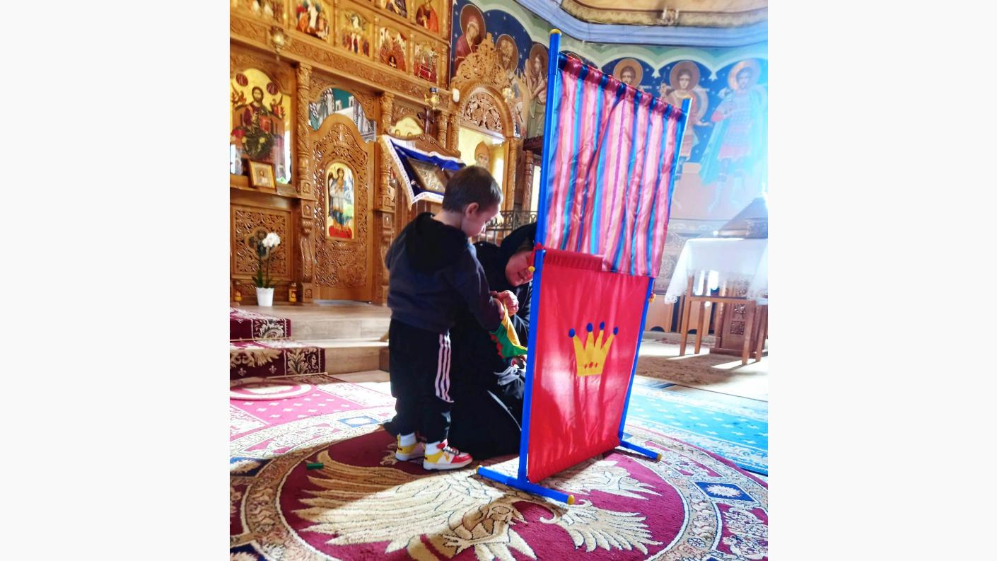 După Sfânta Liturghie, preoții parohiei au organizat un bufet pentru participanți, timp în care spațiul bisericii a fost amenajat cu covoare și pernuțe pentru a se sta jos, iar pentru cei în scaunul cu rotile a fost facilitat accesul pentru a putea participa la sesiunea interactivă de cunoaștere și învățare alături de maica Miriam, care a pregătit un teatru de păpuși și diverse activități menite să vină în sprijinul acestor copii.