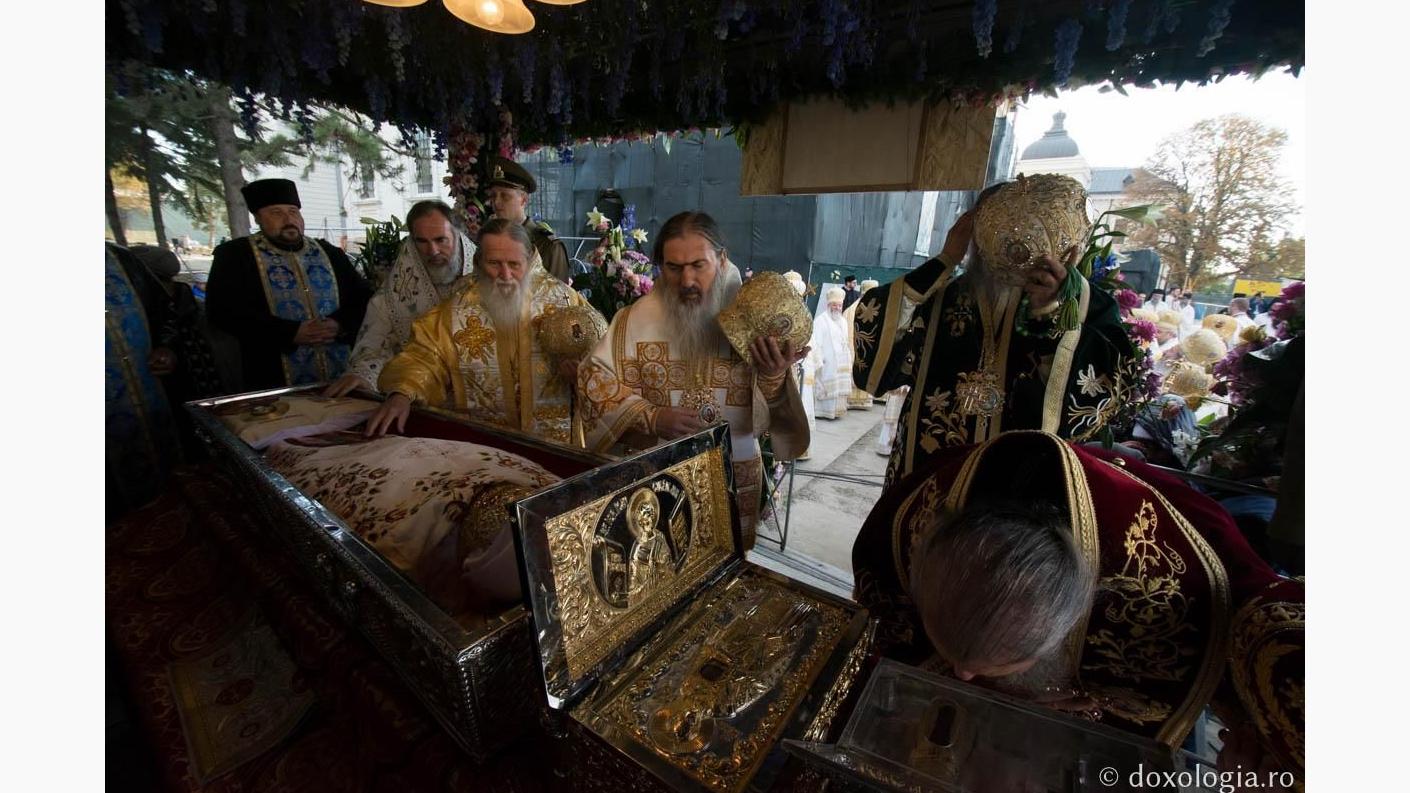 Sărbătoarea Moldovei a culminat azi cu slujba Sfintei Liturghii dedicată hramului, la care au participat 15 000 de credincioşi, în timp ce alți 15 000 de pelerini așteptau cu răbdare la rând pentru a se închina la sfintele moaște ale Cuvioasei, ale Sfintei Maria Magdalena și ale Sfântului Ioan Gură de Aur. Slujba a fost săvârşită pe o scenă special amenajată pe bulevardul Ştefan cel Mare şi Sfânt, de către un sobor de 22 de arhierei români şi străini, sub protia Înaltpreasfinţitului Părinte Mitropolit Damaschin, Arhiepiscop de Joppe şi Arimathea.