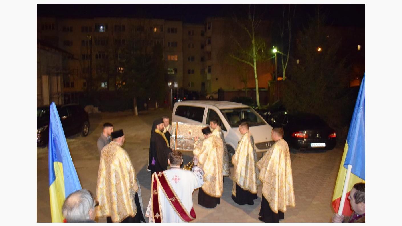Vineri, 24 ianuarie 2020, la orele 18.00, o delegaţie condusă de către Preacuviosul Părinte Arhimandrit Andrei Ioniţă, a adus racla cu sfintele moaşte de la Roman, care a fost întâmpinată de către PC Părinte Protoiereu Costică Busuioc, împreună cu preoţii şi credincioşii acestei parohii, precum şi alţi preoţi invitaţi.