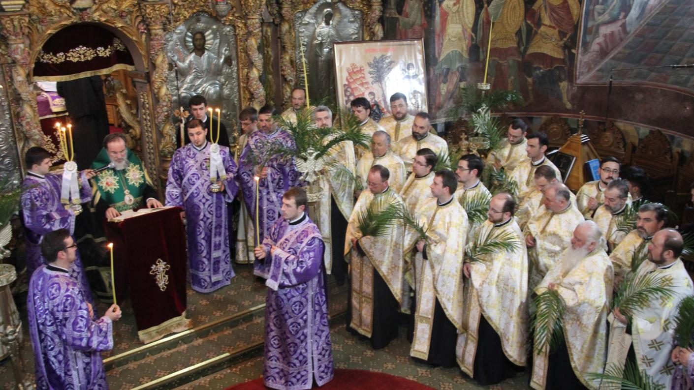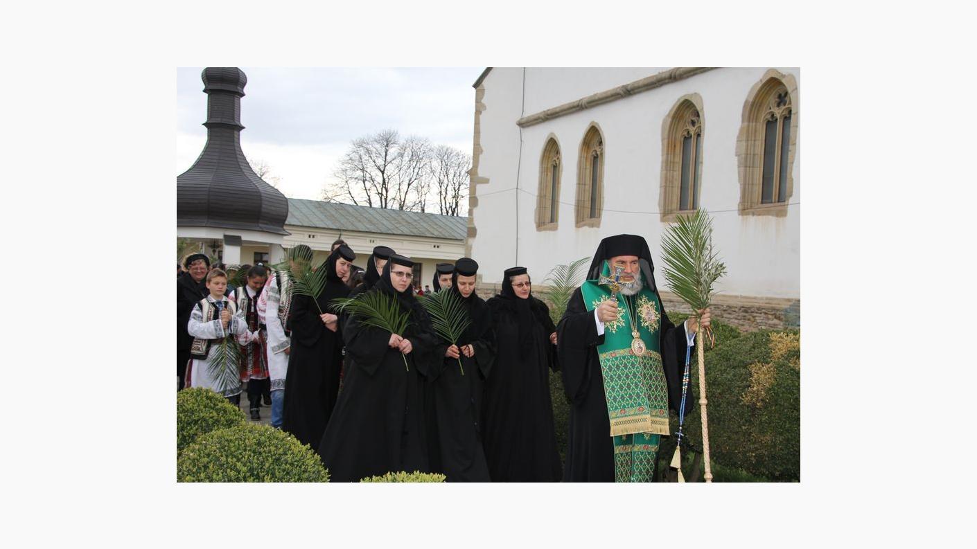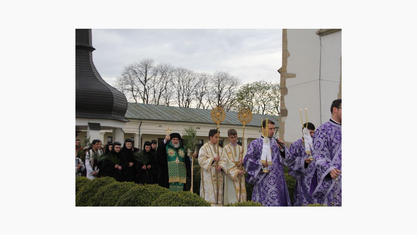 Purtând în mâini stâlpări, sute de credincioși romașcani, împreună cu zeci de preoți din Protopopiatul Roman, au participat la procesiunea din Duminica Floriilor, organizată la Catedrala Arhiepiscopală ”Sf. Cuvioasă Parascheva”. Conform tradiției, aceasta a început în jurul orei 17.00, când Preasfințitul Părinte Episcop Ioachim Băcăuanul a fost întâmpinat, pe aleea ce duce spre Catedrală, de pelerinii purtând în mâini flori și stâlpări, în armonia cântărilor specifice perioadei prepascale, interpretate de soborul de preoți, în frunte cu pr. Ioan Gherasimescu, vicar-administrativ al Eparhiei Romanului și Bacăului. Melosul Duminicii Stâlpărilor a continuat să răsune din străvechiul lăcaș de cult mușatin, acolo unde ierarhul împreună cu preoții și credincioșii, s-a rugat în seara primei Denii din Săptămâna Patimilor. De aici, toți cei prezenți la această sărbătoare premergătoare bucuriei pascale au ieșit în procesiune în jurul Catedralei Arhiepiscopale, având în frunte icoana Intrări Domnului în Ierusalim. Pe scena special amenajată în fața Palatului Arhiepiscopal, unde a luat sfârșit procesiunea, Preasfințitului Părinte Ioachim Băcăuanul a ținut un cuvânt de învățătură, în care a explicat semnificația zilei, a sărbătorii Floriilor, precum și a Săptămânii Patimilor. ”În perioada de timp care a început în această seară, noi trebuie să urmăm aceeași cale, precum și Hristos Domnul cu crucea în spate pe drumul Golgotei. Dacă astăzi, în zi de sărbătoare, ne-am bucurat ca oarecând cei de demult, și L-am aclamat pe Hristos, să nu fim asemenea acelei mulțimi versatile, adică îndoielnice și schimbătoare, care atunci când L-a văzut pe Hristos și crucea Lui, și-a schimbat opțiunea, ci să rămânem împreună cu El în comuniune de iubire, chiar dacă El este batjocurit, scuipat și hulit, și să ființăm în ceea ce El, prin patima Sa, ne-a făcut să fim, adică fii ai lui Dumnezeu prin smerenie, după har, cum spunem în teologia noastră ortodoxă. Iar dacă am strigat astăzi ”Osana”, văzând pe Hristos intrând biruitor în cetatea Ierusalimului, să strigăm, tot așa, și în fața Crucii Lui. Căci altădată mulțimea a strigat ”Osana”, dar după puțin timp, când L-a văzut în fața lui Pilat plin de rănile iubirii filantropice, s-a schimbat, strigând ”la moarte, la moarte”. Iar strigătul ”Binecuvântat este cel ce vine întru numele Domnului” s-a preschimbat în ”răstignește-L, răstignește-L”. Să păstrăm permanent, în cursul săptămânii pe care am început-o, această dimensiune sacră, liturgică și mistagogică, să actualizăm în noi, tot demersul jertfelnic, să fim în permanentă stare de jerfă ca Hristos să Se recunoască în noi, când vom fi lângă Crucea Sa”, a menționat Preasfințitul Părinte Episcop Ioachim. ”Să ne ajute Dumnezeu să fim purtători, până la final, ai florilor dătătoare de roade, ca Mântuitorul Hristos să regăsească întru noi roadele Duhului Sfânt, și să Se recunoască în faptele pe care le-am făcut întru slava Sa”, a conchis ierarhul.